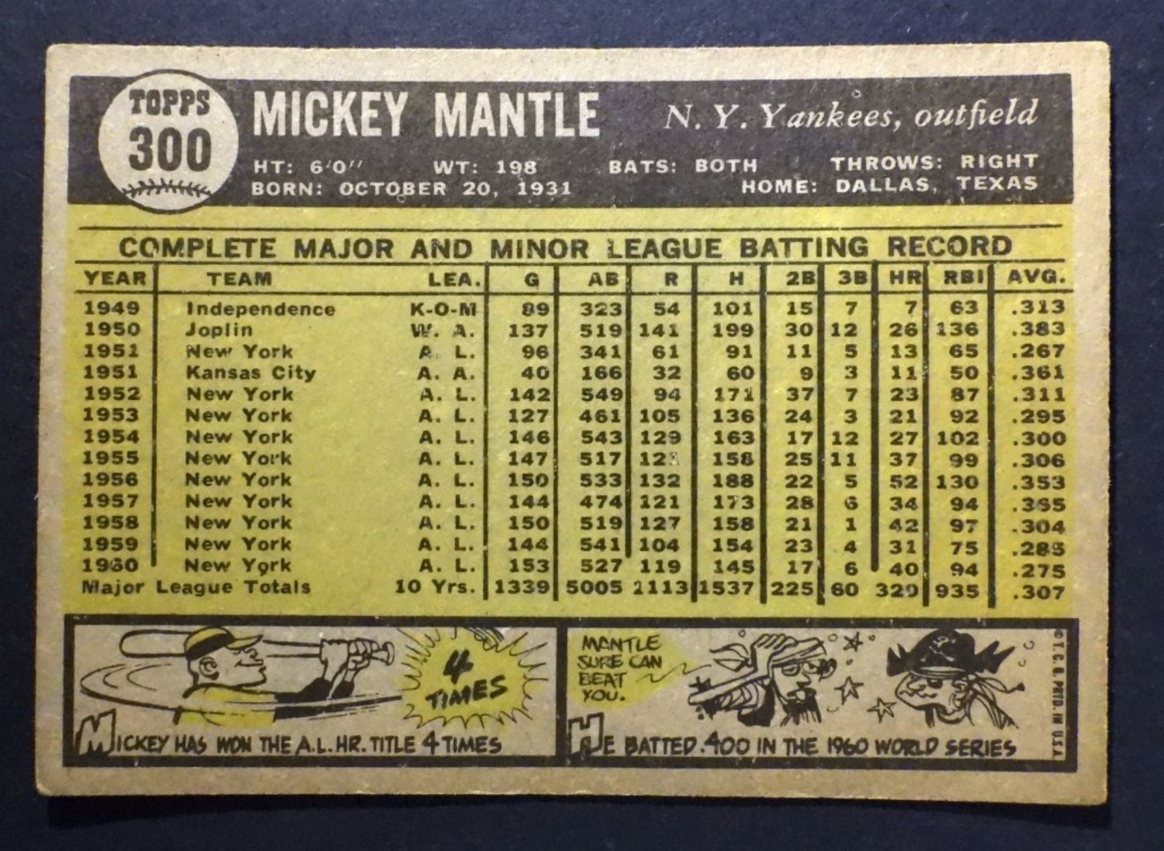 1961 TOPPS #300 MICKEY MANTLE