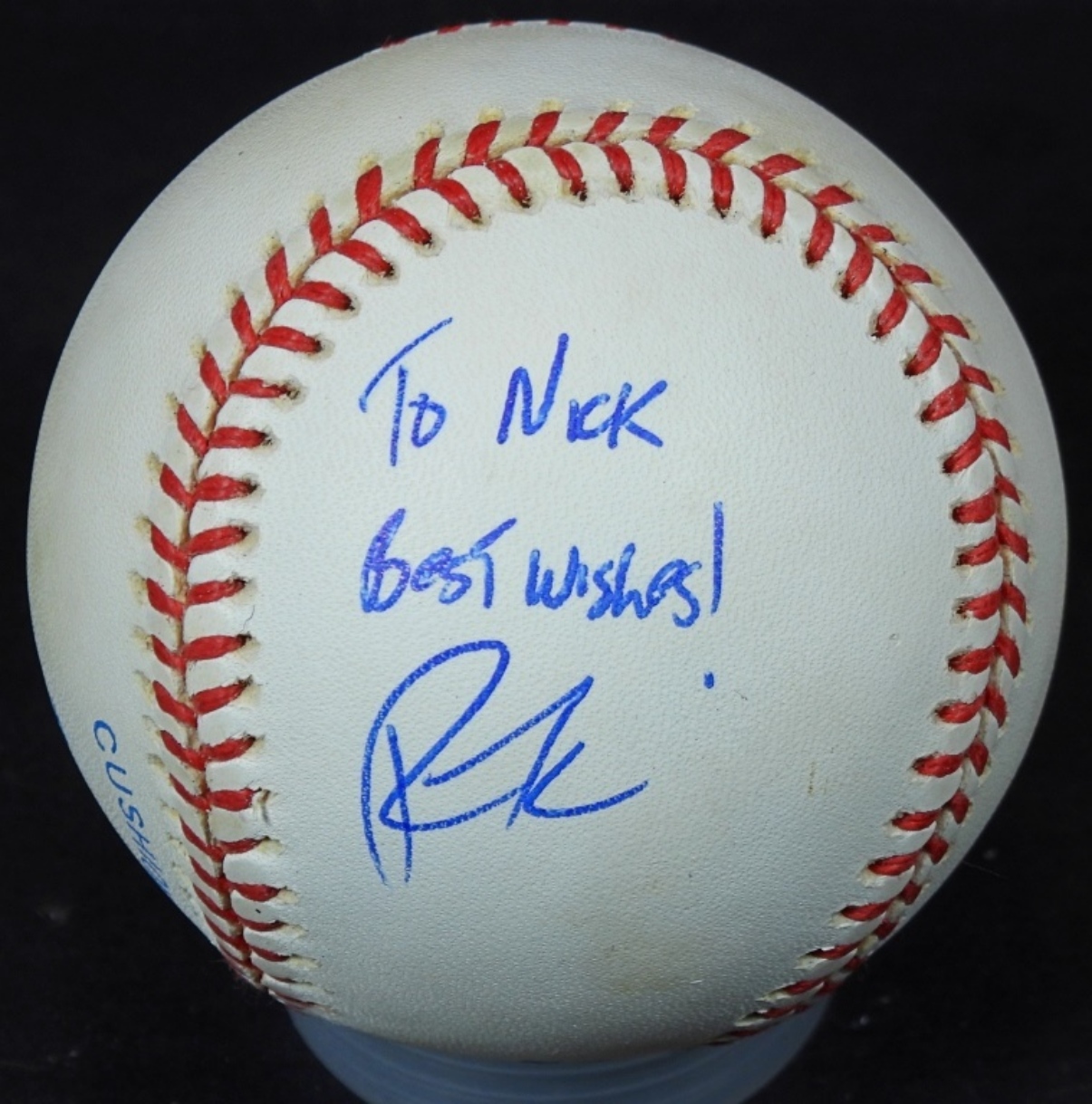 AUTOGRAPHED “TO NICK” ROBERT FICK BASEBALL, UNVERIFIED, IN PROTECTIVE CASING NO COA