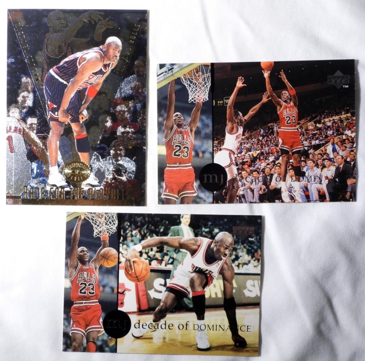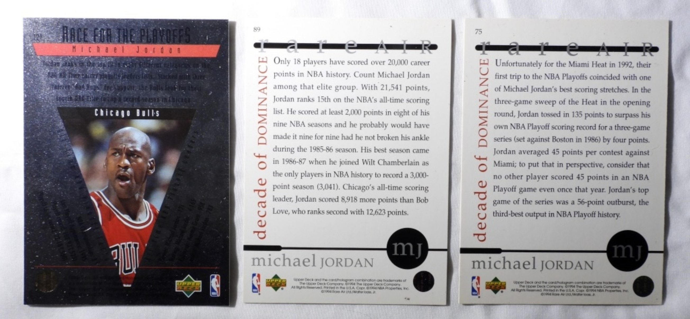(3) UPPER DECK MICHAEL JORDAN SPORTS CARDS, NUMBERS 1994 75, 1996 121, 1994 89 (EX)