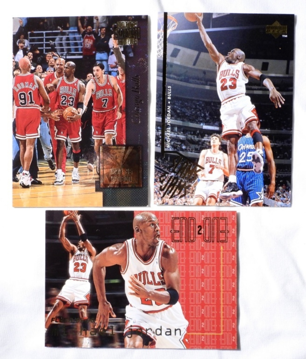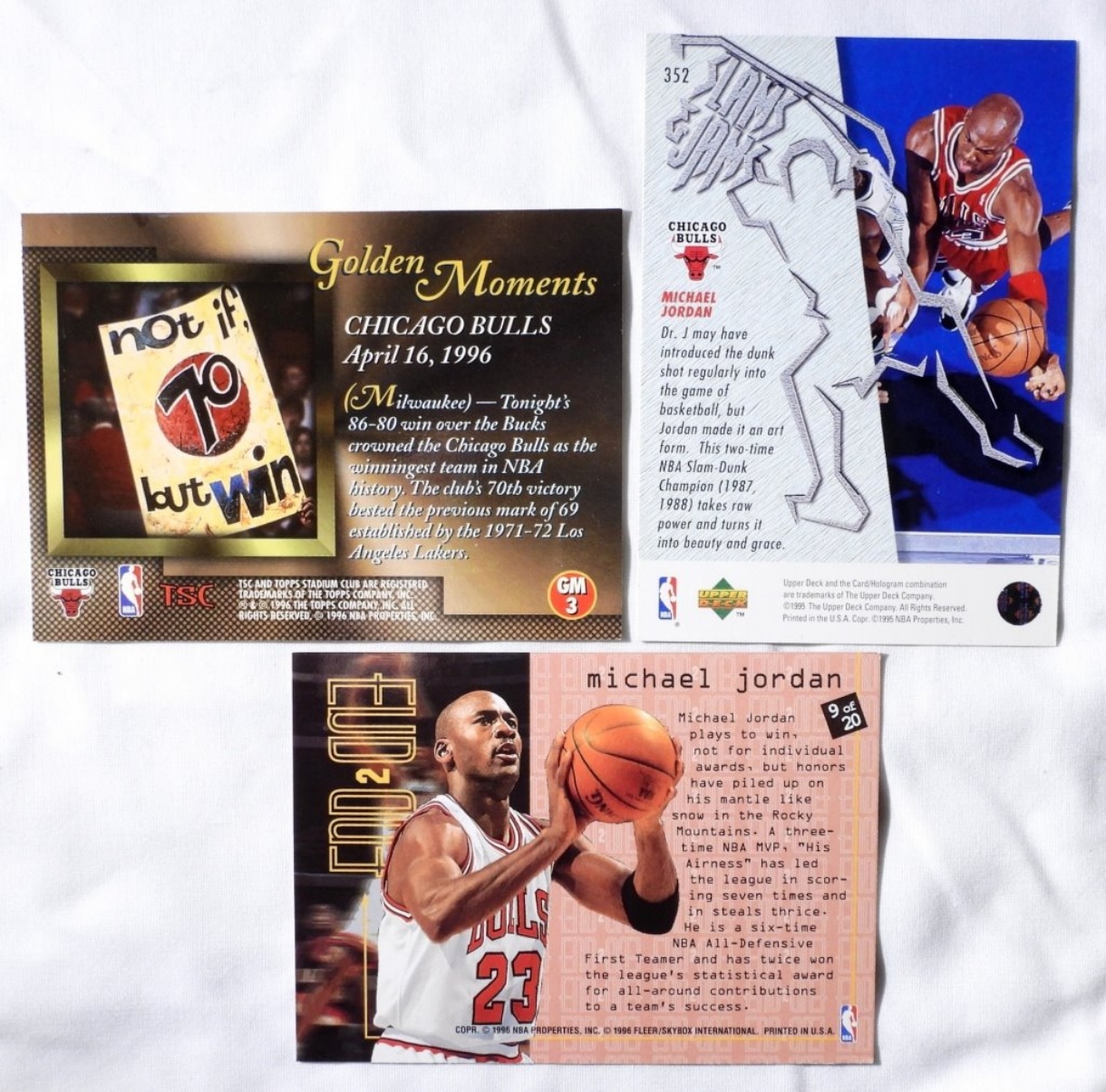 (3) MICHEAL JORDAN SPORTS CARDS 1996 TOPPS GM3, 1995 UD 352, 1996 FLEER 9 (EX)
