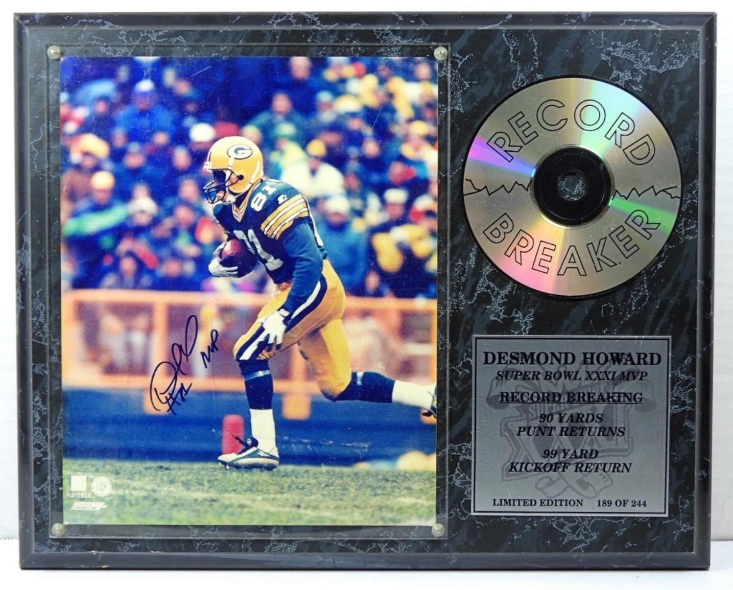 DESMOND HOWARD SIGNED RECORD BREAKER PLAQUE,LIMITED EDITION 189 OF 244 – NO COA / UNVERIFIED