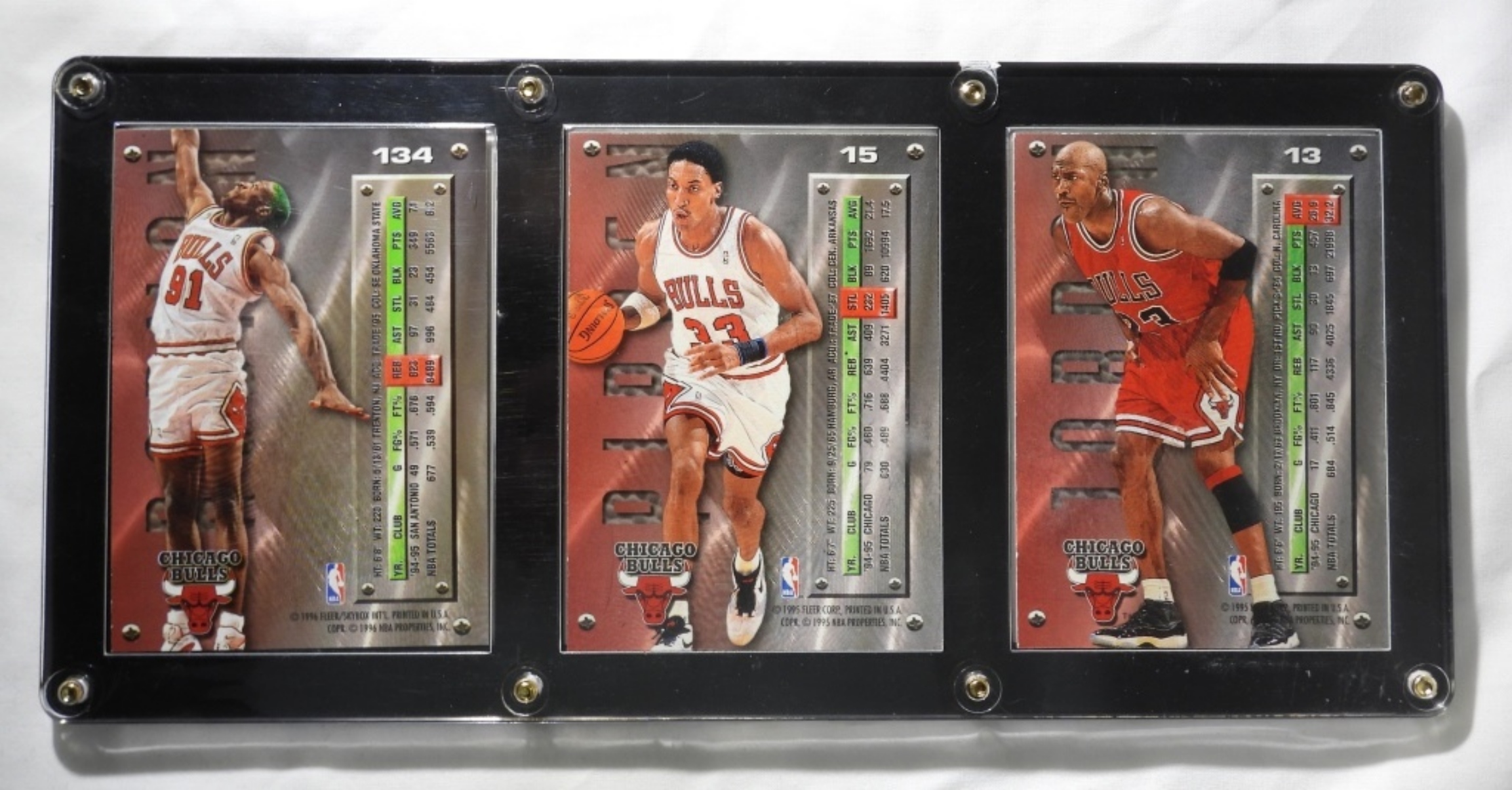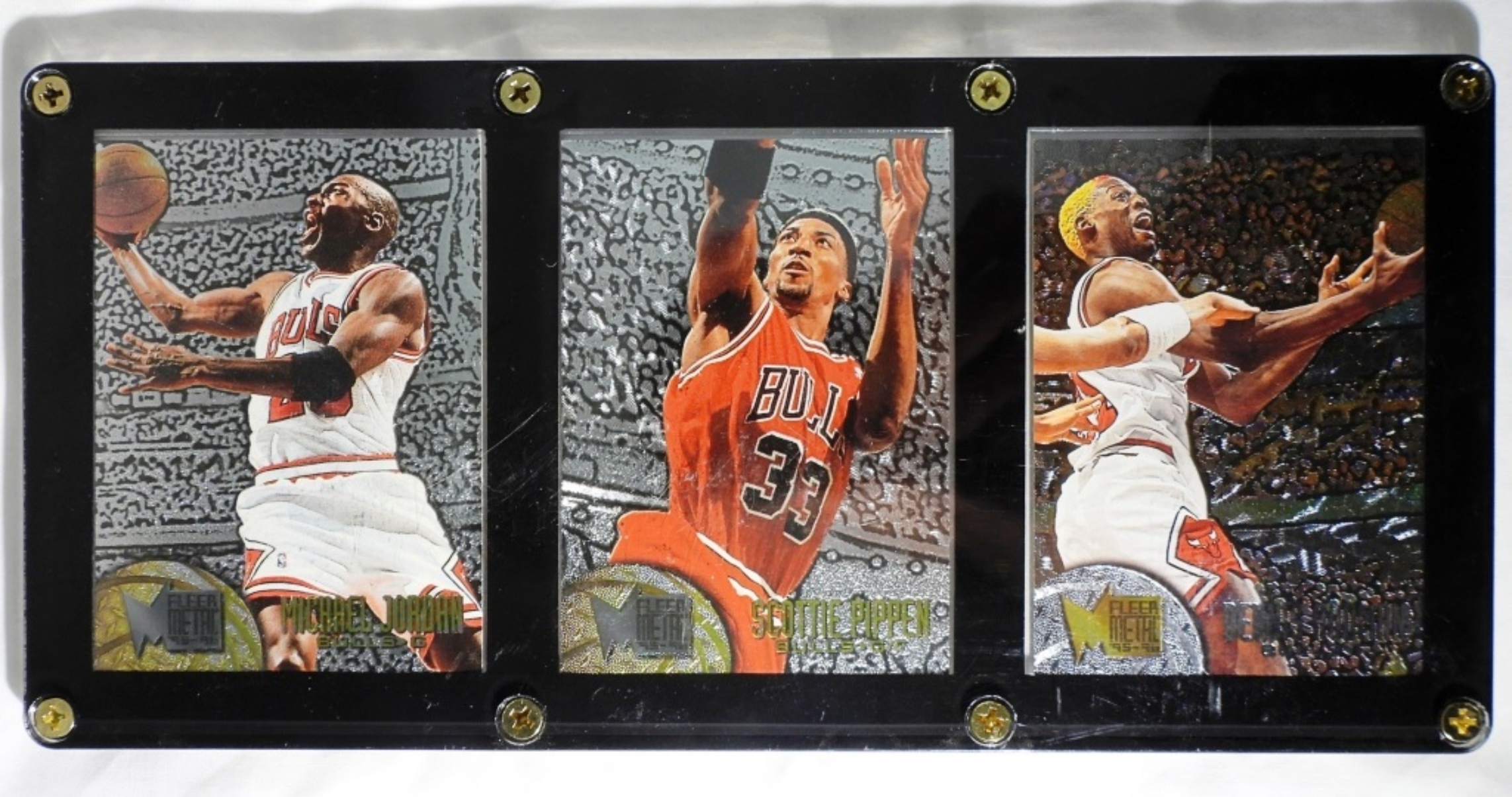 EX OR BETTER, FLEER METAL 95-96, #13,15,134, IN A SCREWED IN PLAQUE