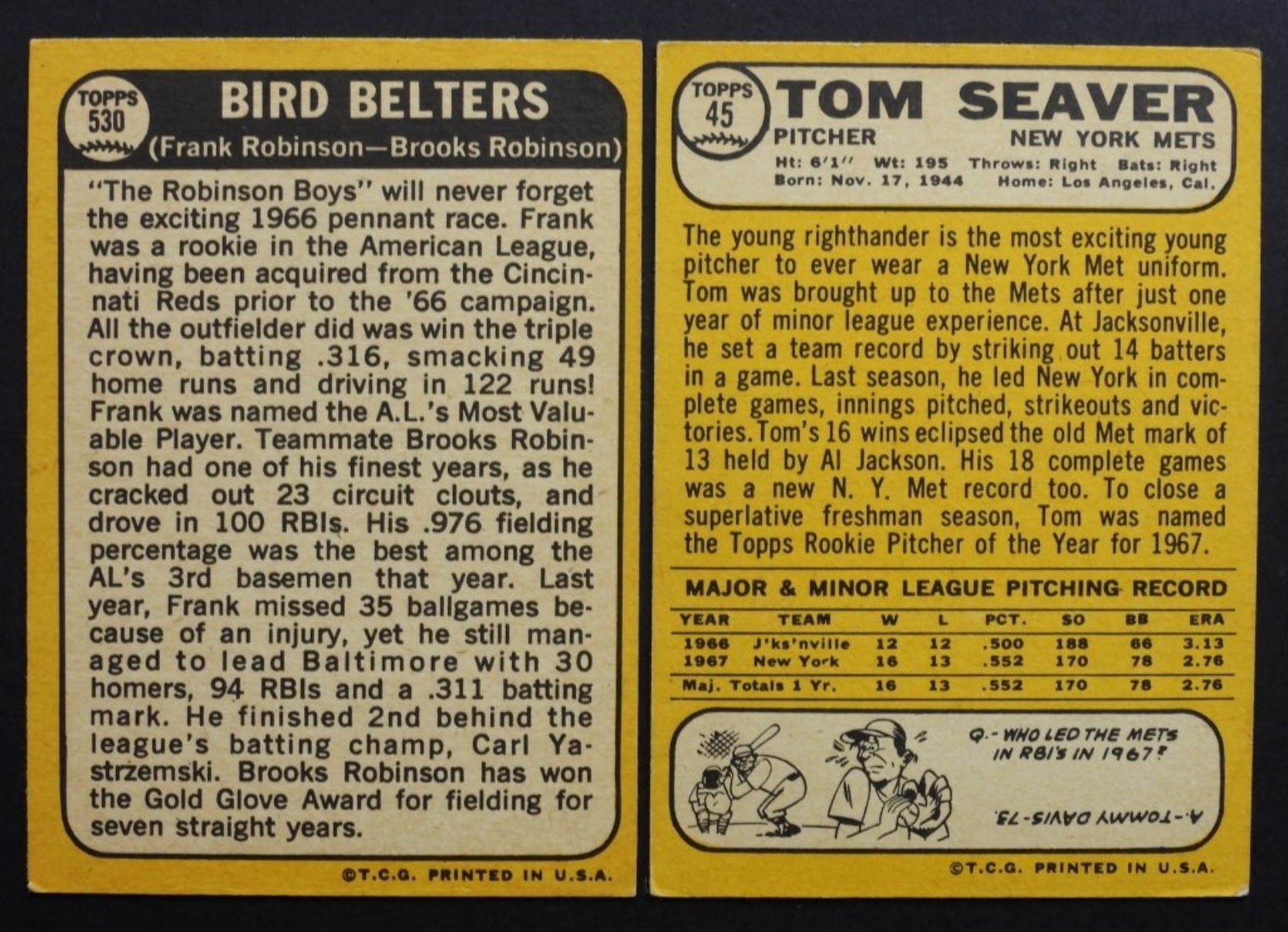 #45 SEAVER VGEX+ & #530 BIRD BELTERS F.ROBINSON & B.ROBINSON VGEX