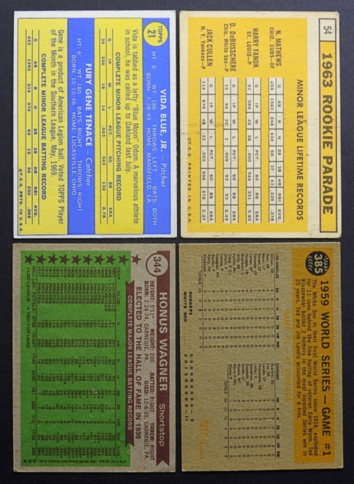 (4) BASEBALL CARDS – 1963 T #54, 1970 T #21, 1960 T#385, 1976 T #344 – VG-EX