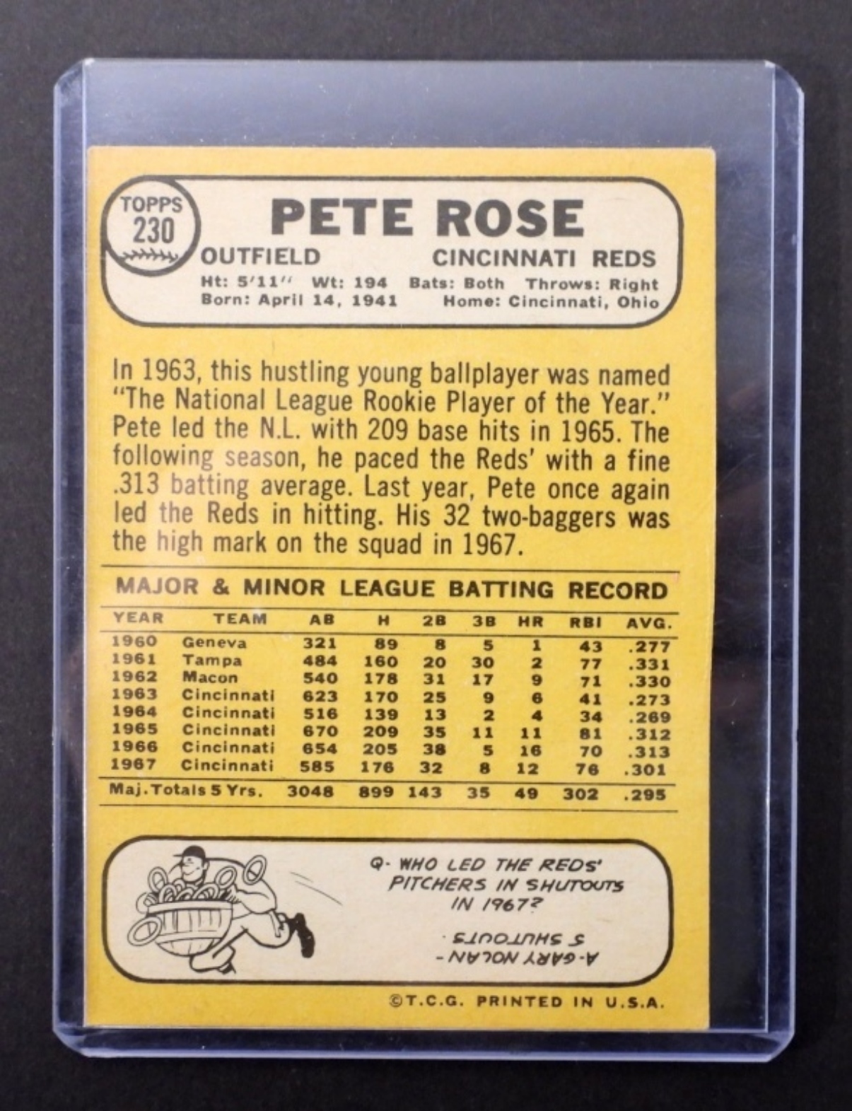 PETE ROSE 1968 #230 TOPPS BASEBALL CARD (VGEX)