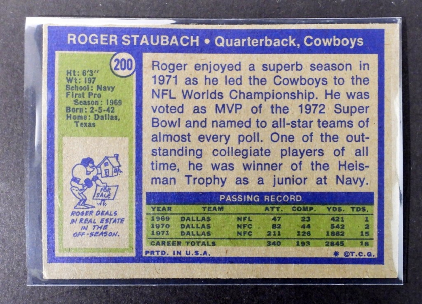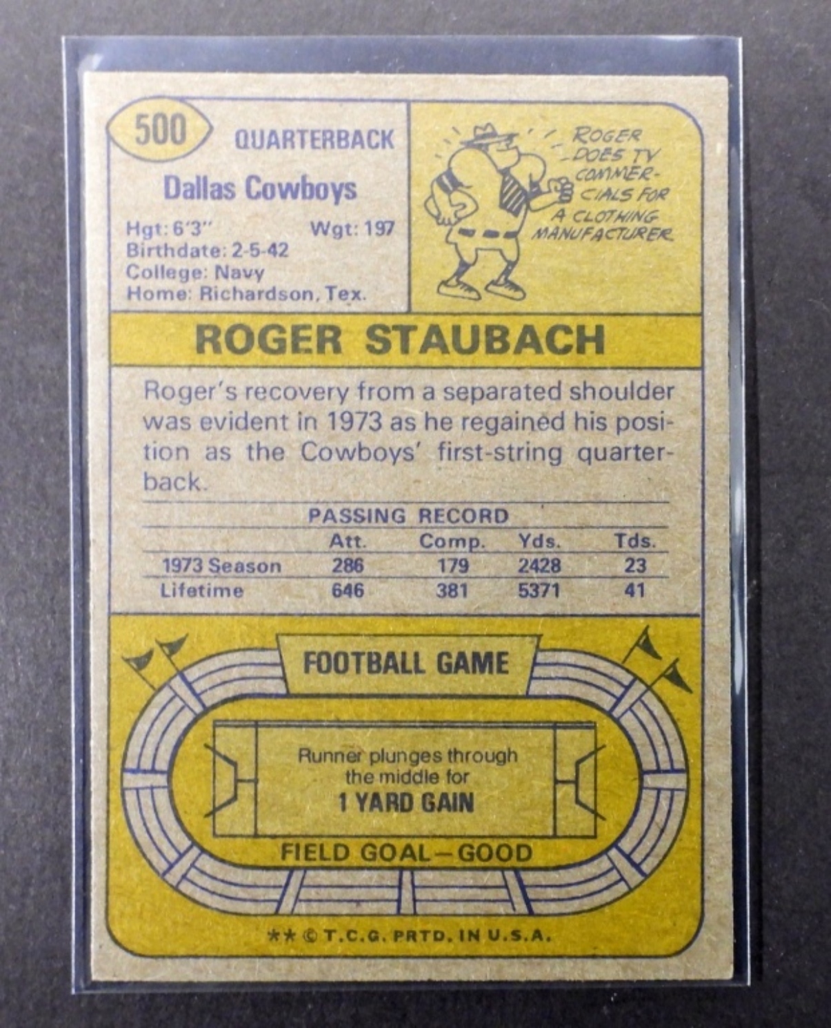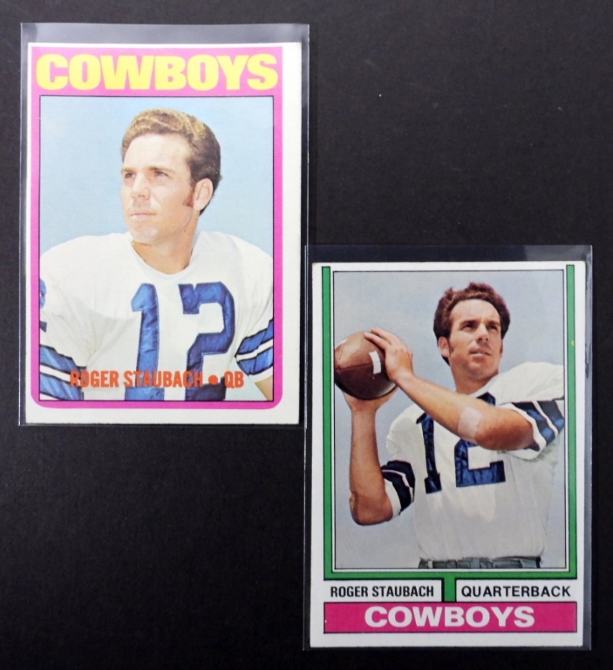 (2) VARIETY ROGER STAUBACH TOPPS CARD, NUMBERS 74 TOPPS #500 AND 72 TOPPS #200 (VGEX/EX)