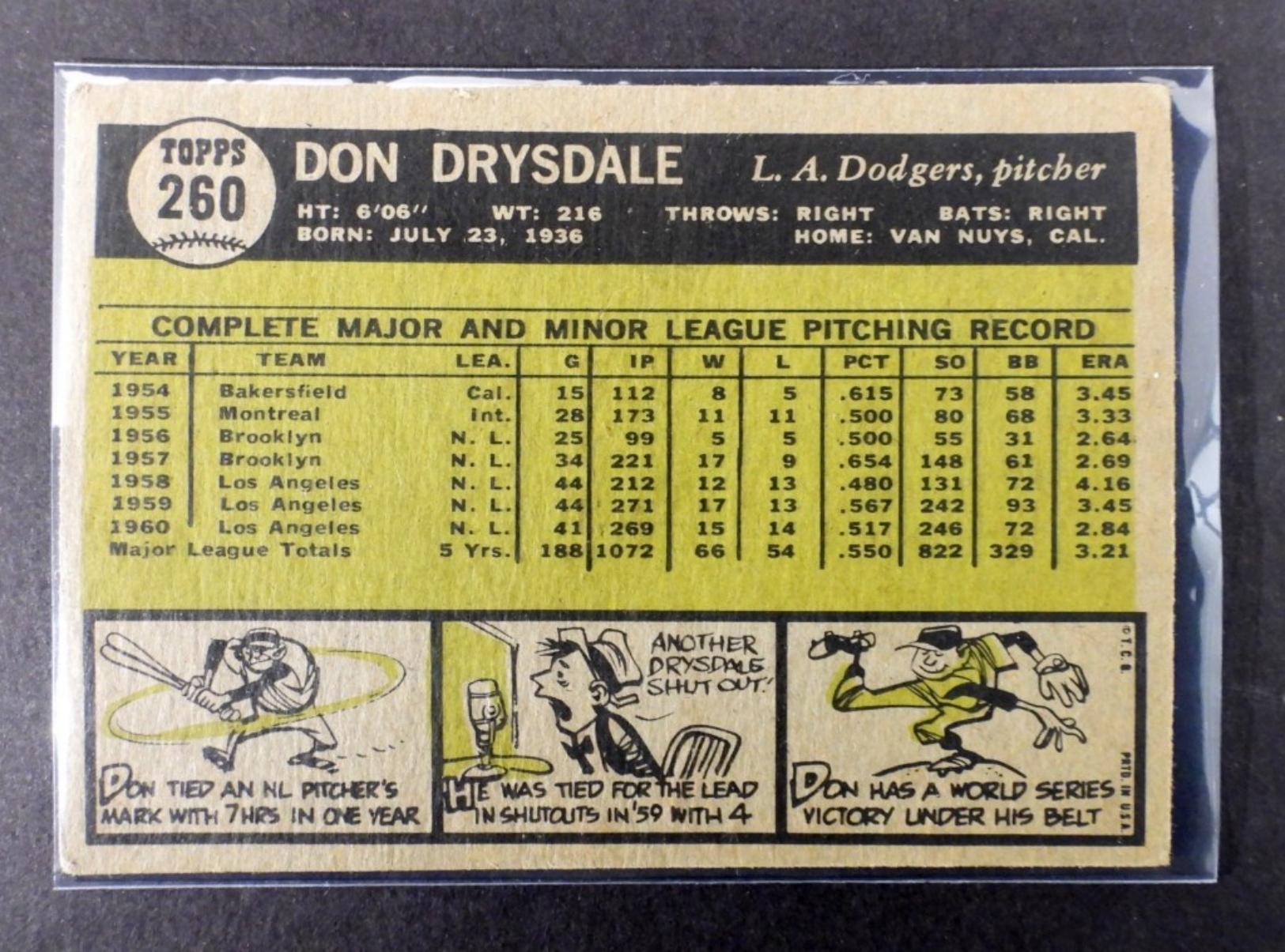 1961 DON DRYSDALE TOPPS BASEBALL CARD #260, (GOOD)