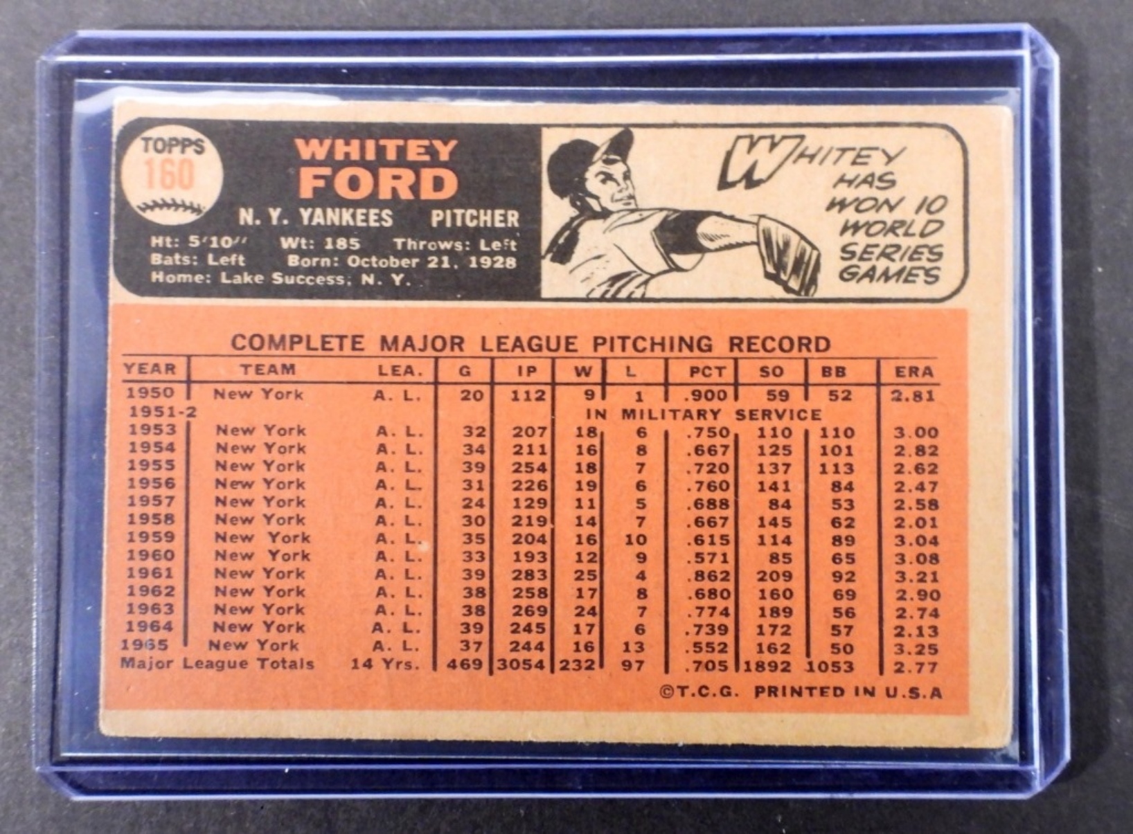 1966 TOPPS #160 WHITEY FORD CARD (VERY GOOD)