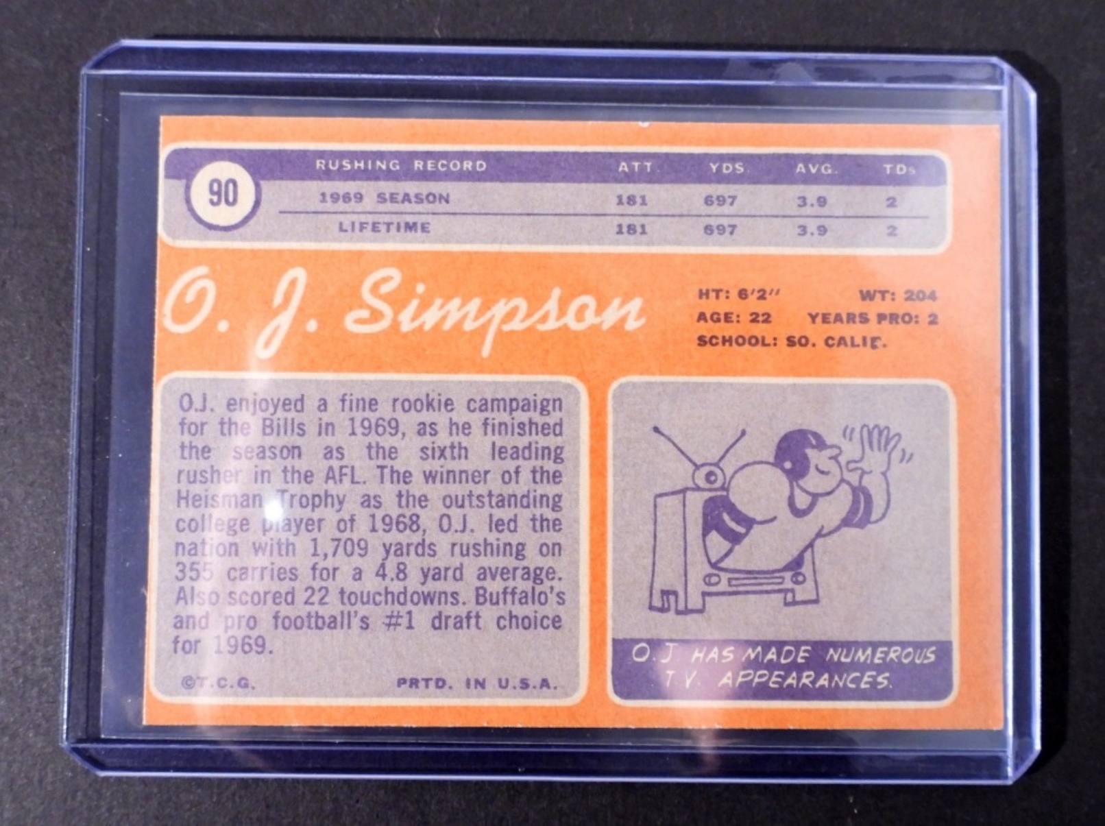 1970 TOPPS FOOTBALL CARD OJ SIMPSON BUFFALO BILLS #90 (EX) OFF CENTER T-B