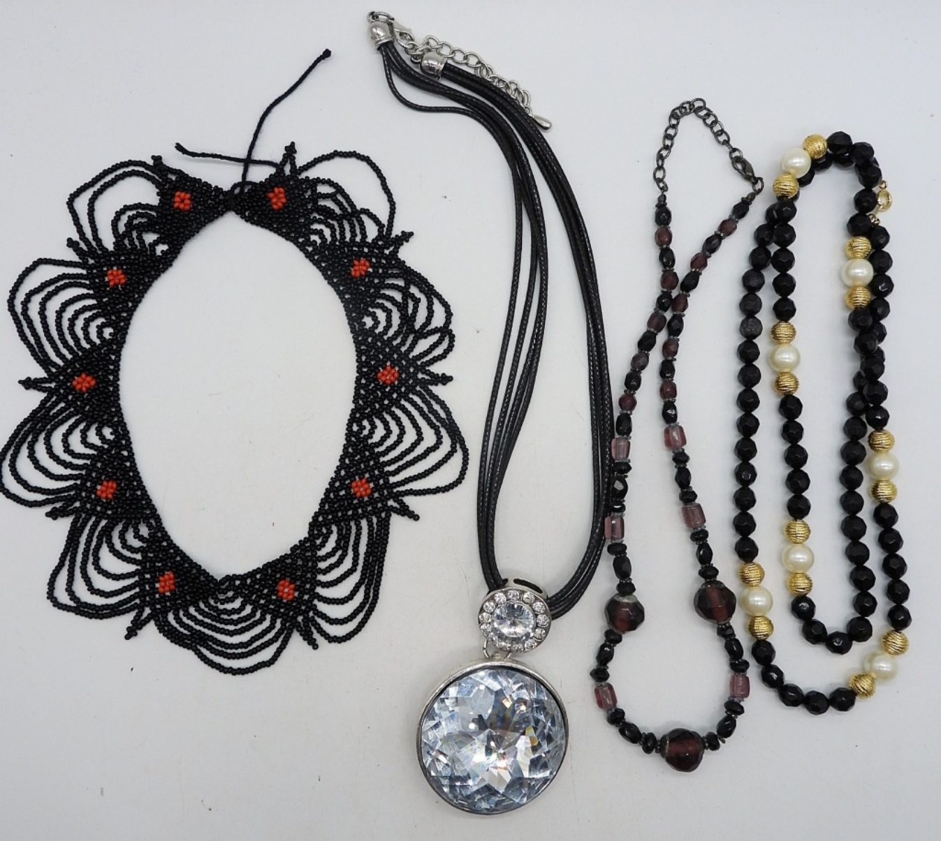 FOUR BLACK BEADED FASHION NECKLACES. 13-30″