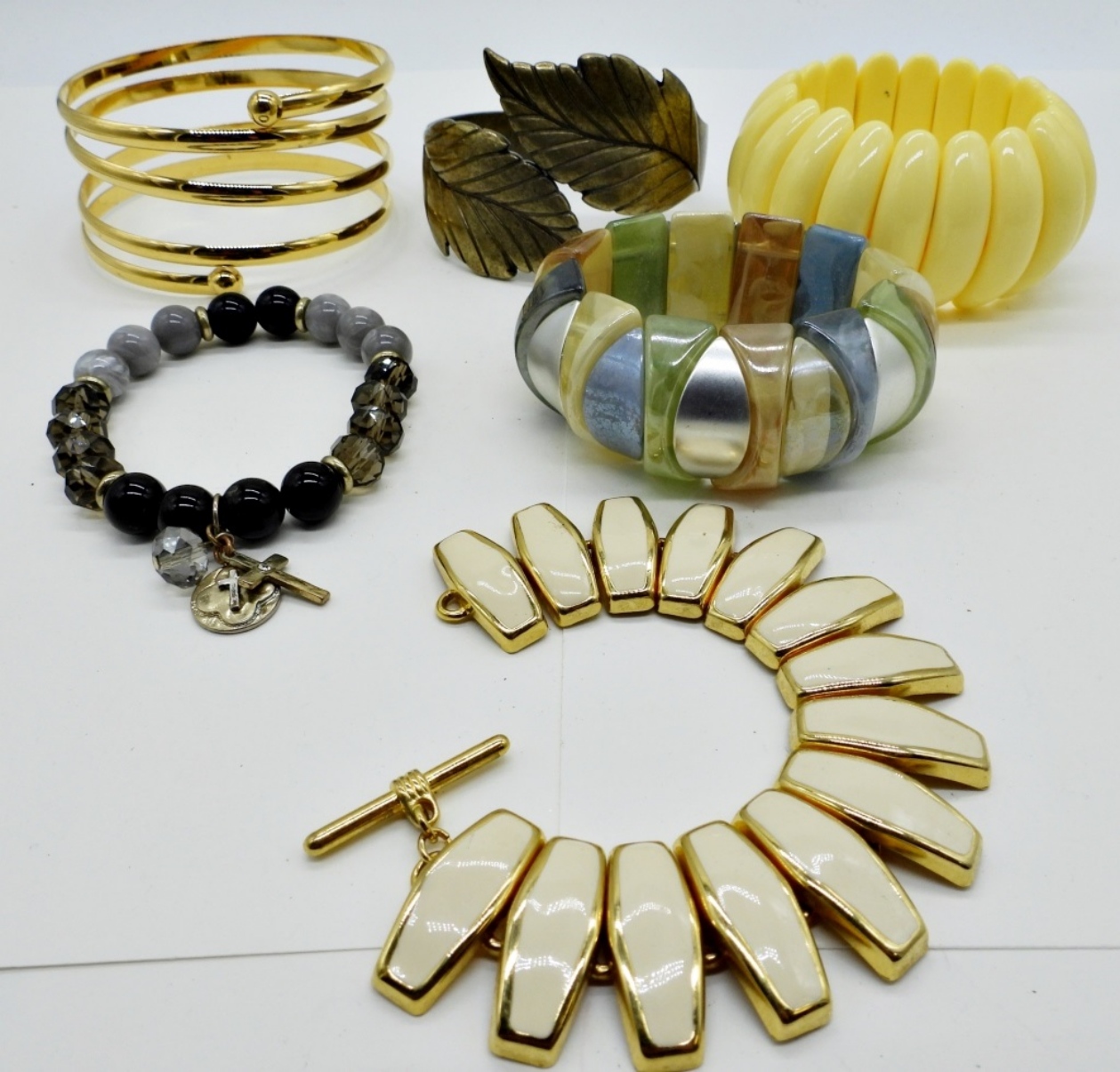 6 VINTAGE BRACELETS, STRETCHY & ADJUSTABLE.