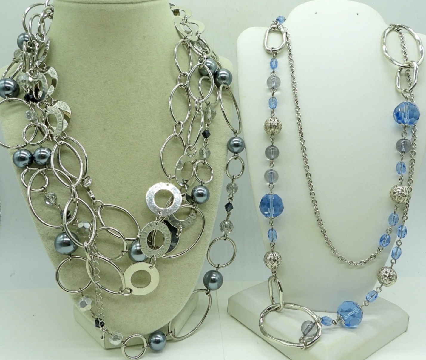 THREE LONG FASHION NECKLACES, 42″ & 46″.