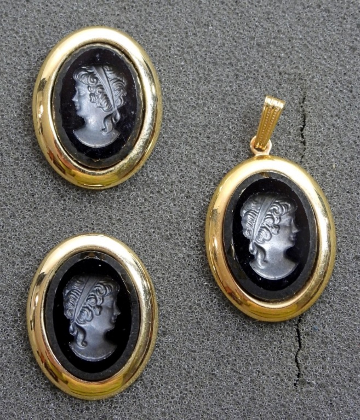 SET OF BLACK CAMEO EARRINGS/PENDANT, DOES NOT COME WITH CHAIN FOR PENDANT