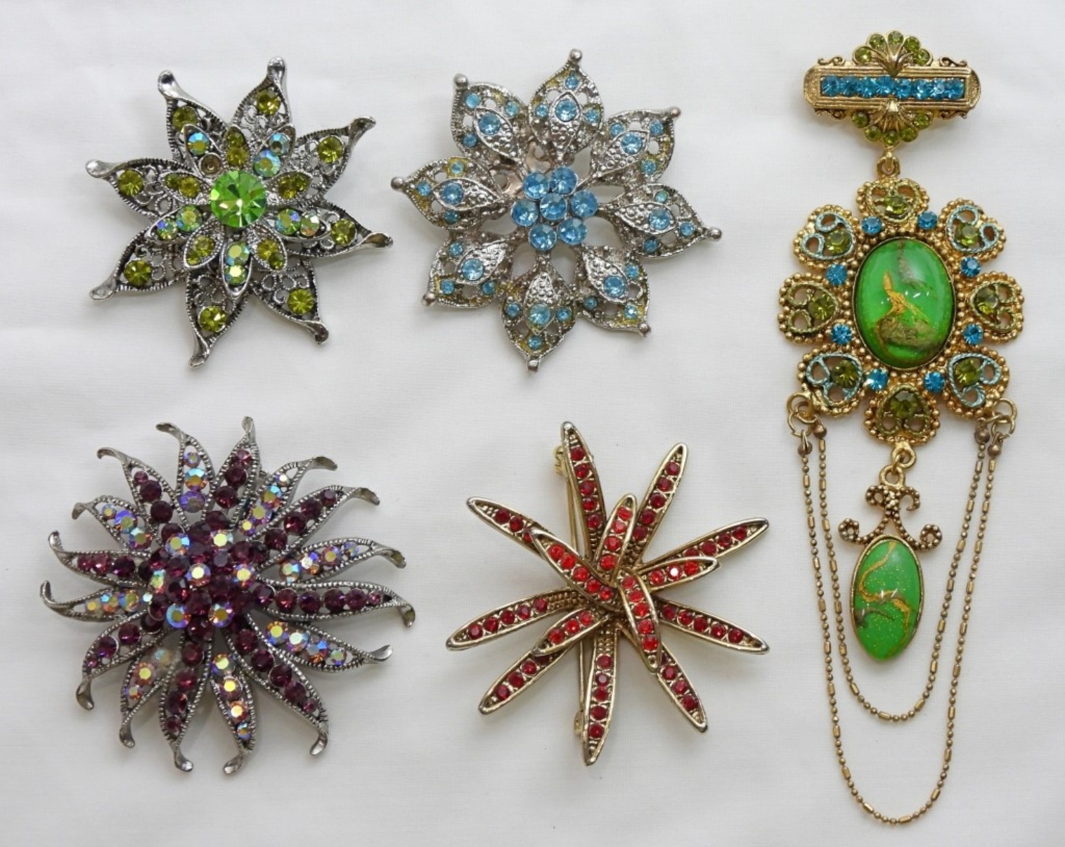 5 STUNNING SPARKLY FLOWER STYLE PINS