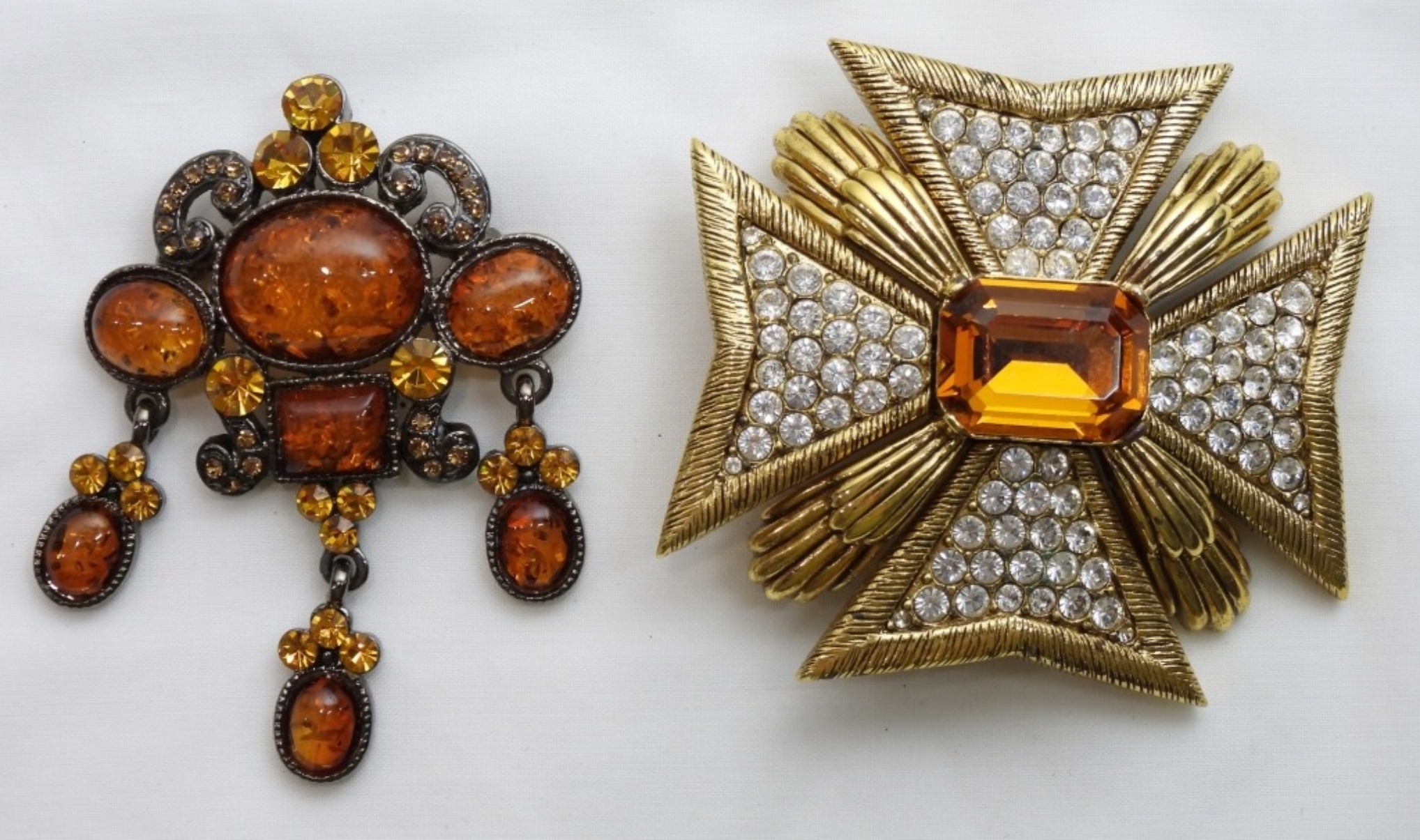 2 STUNNING SPARKLY LARGE PINS, BOTH WITH FAUX SPARKLY GEM STONES