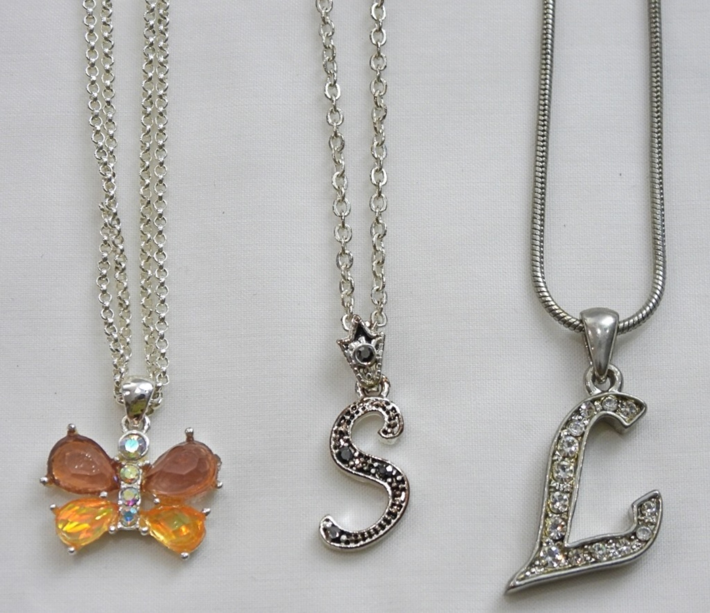 3 COLORFUL FAUX GEM STONE BEAUTIFUL SILVER TONE NECKLACES