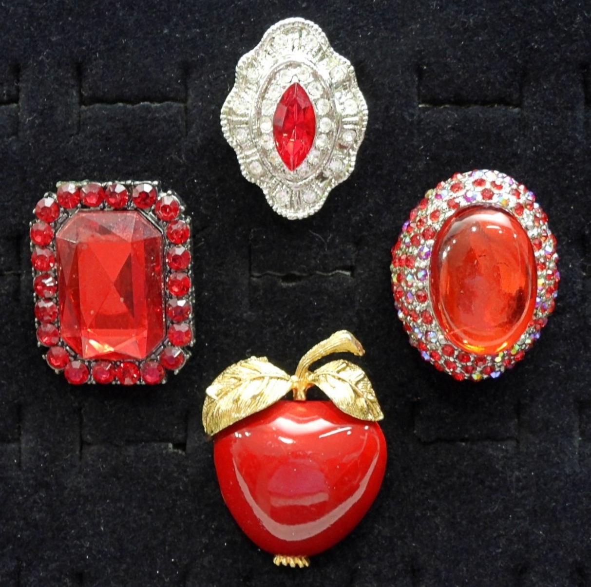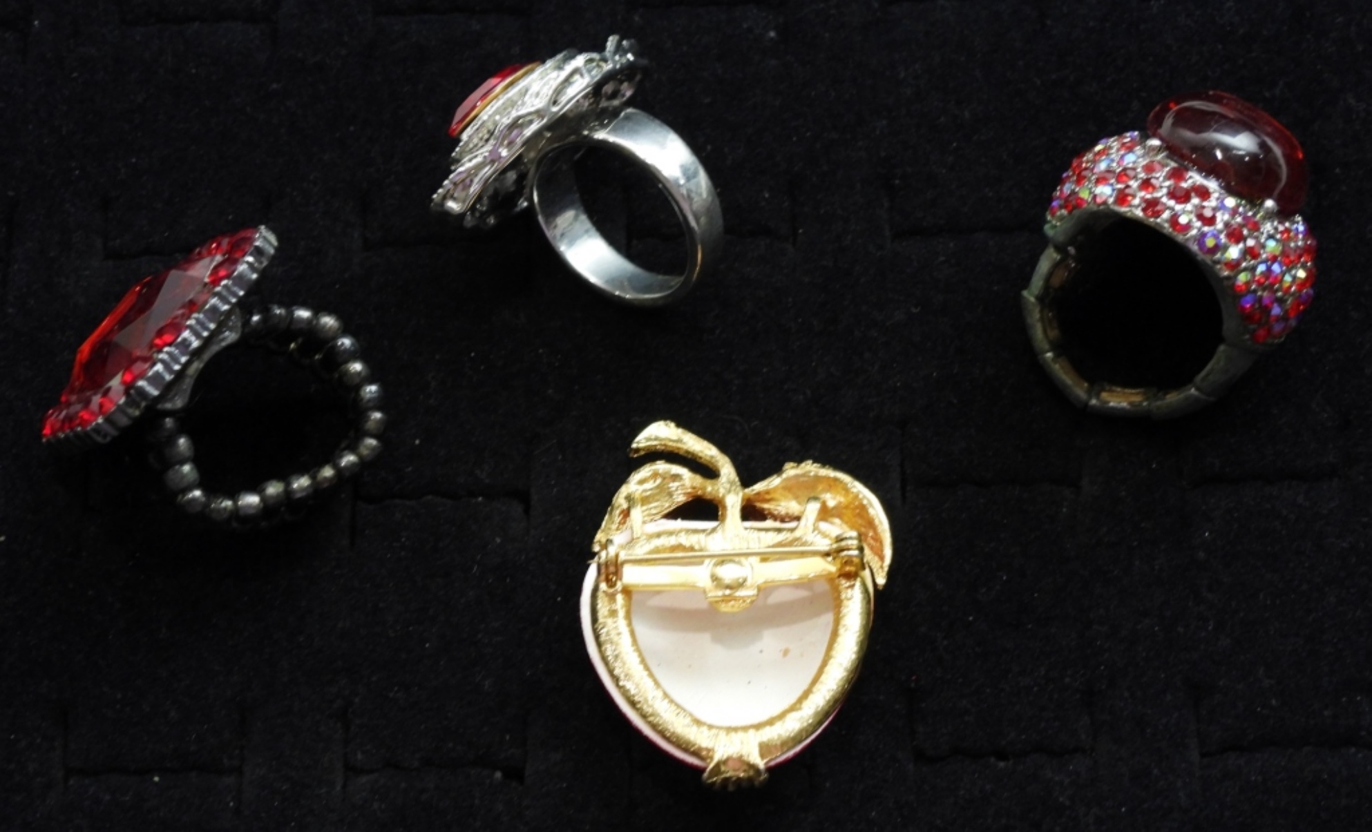 3 VARIETY COLORFUL SPARKLY RINGS AND 1 PIN
