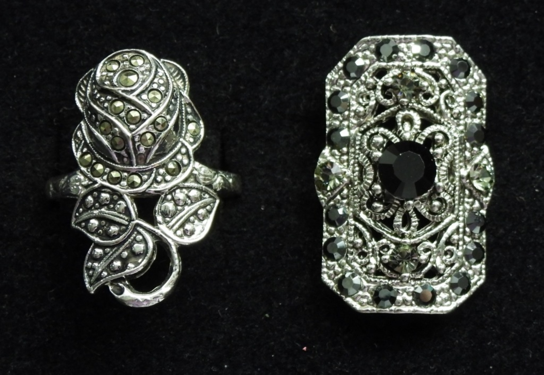 2 BLACK/SILVER TONE RINGS