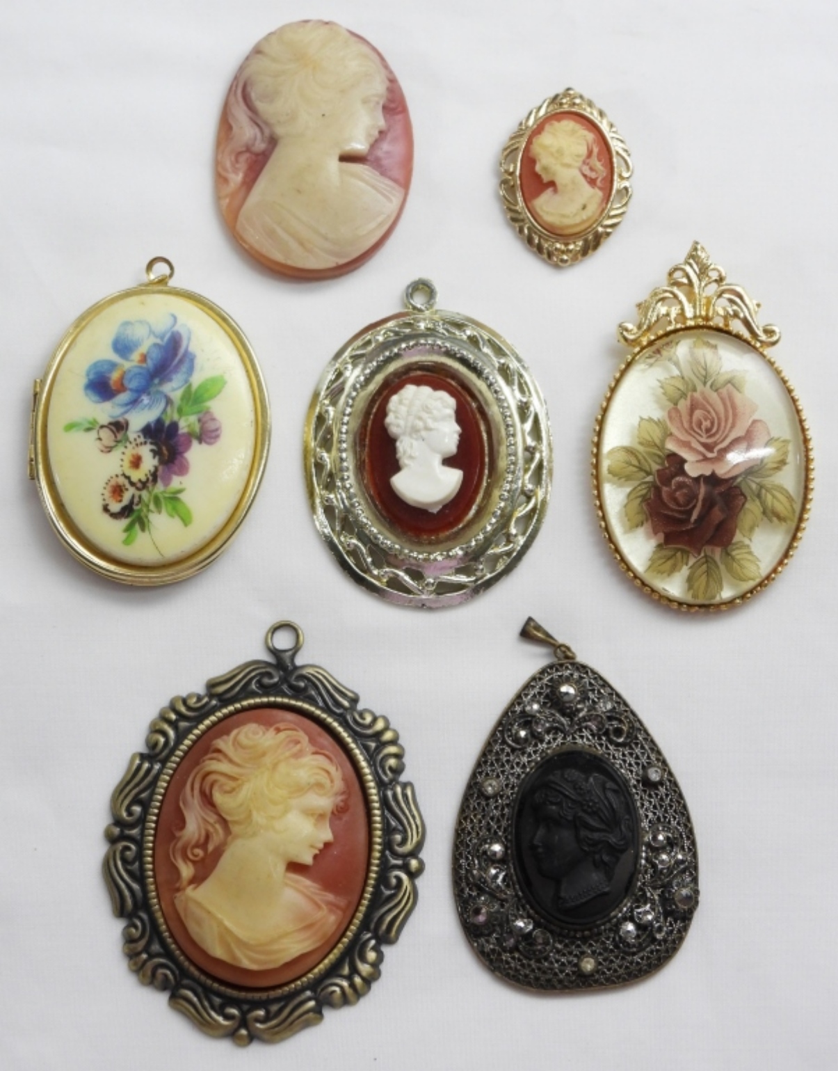 7 BEAUTIFUL VINTAGE CAMEO PENDANTS