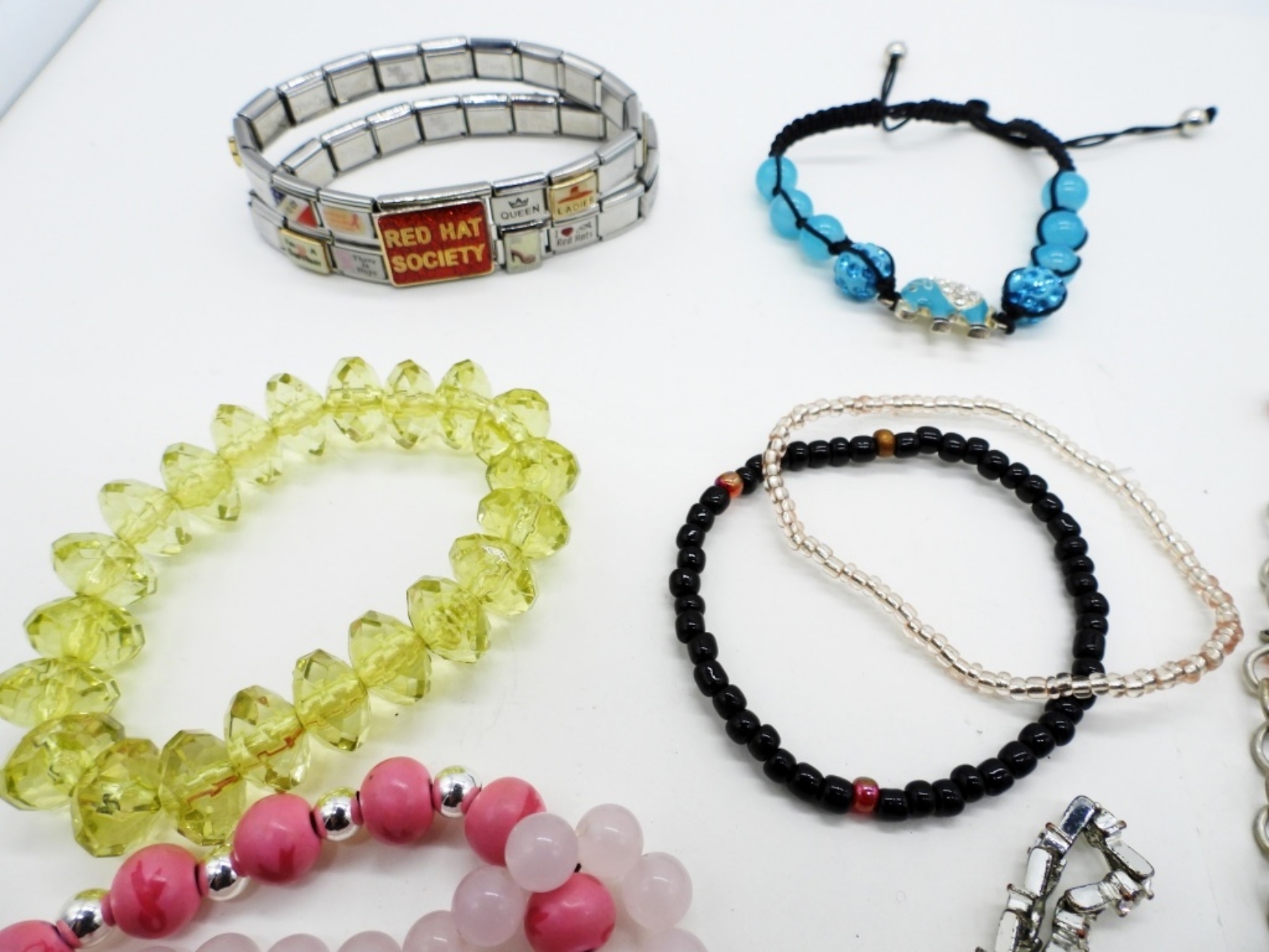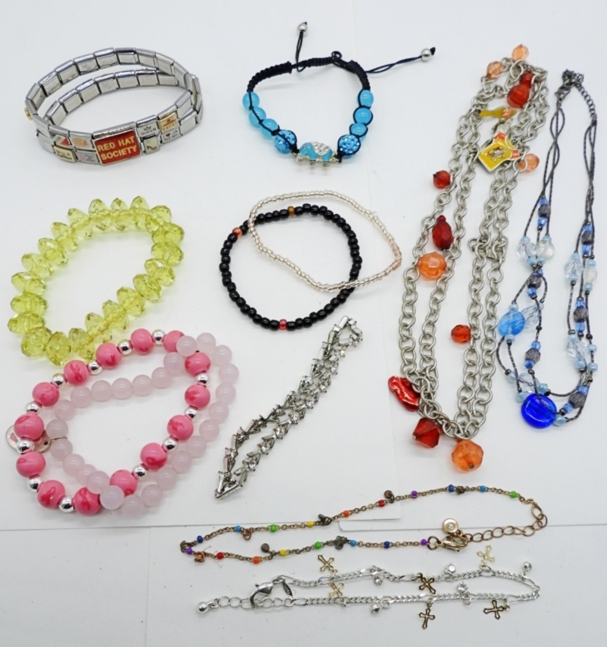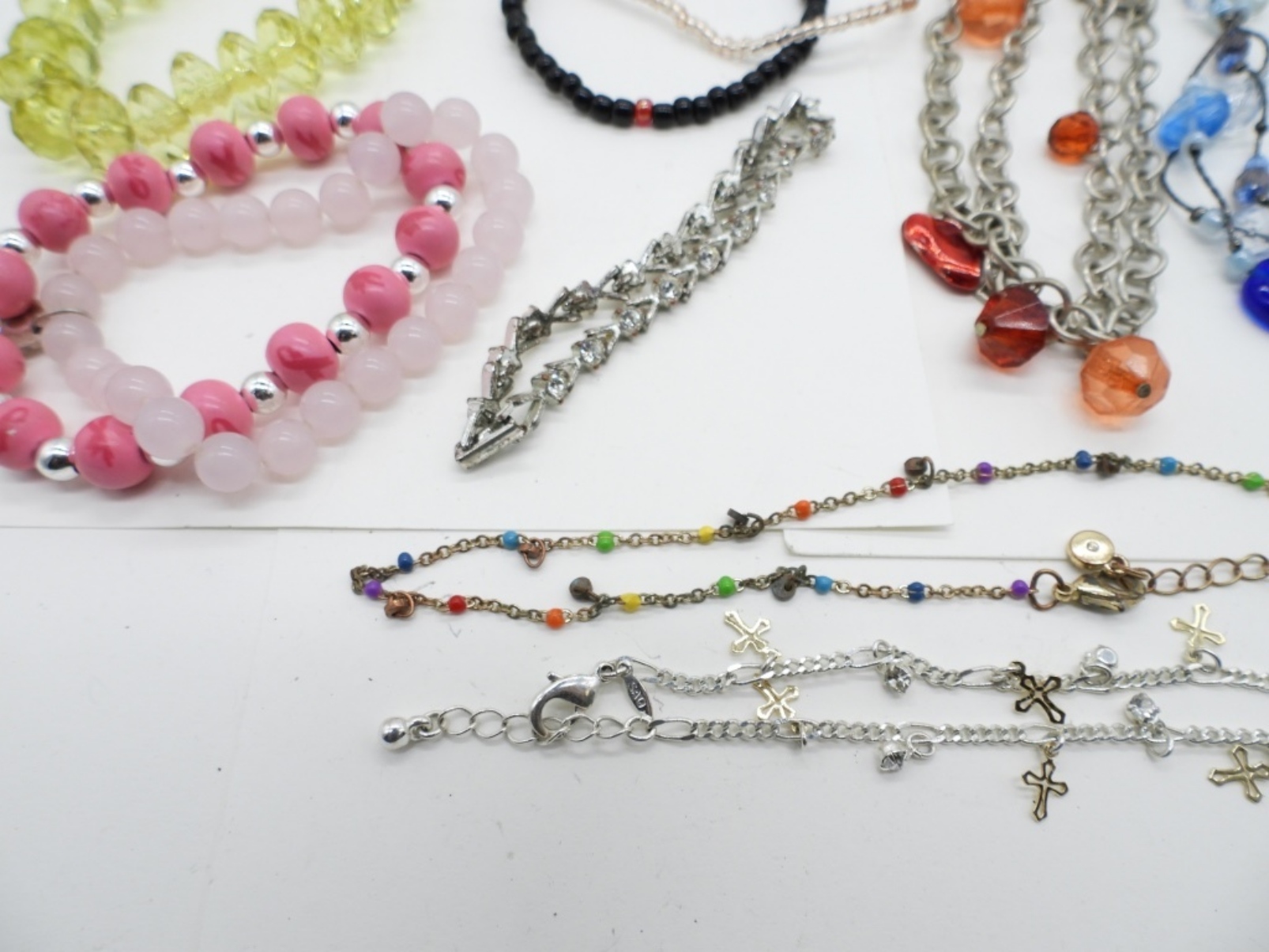 7 STRETCHY BRACELETS & 7″. TWO ANKLETS, 9″ & 11″. TWO NECKLACES, 16″ & 36″