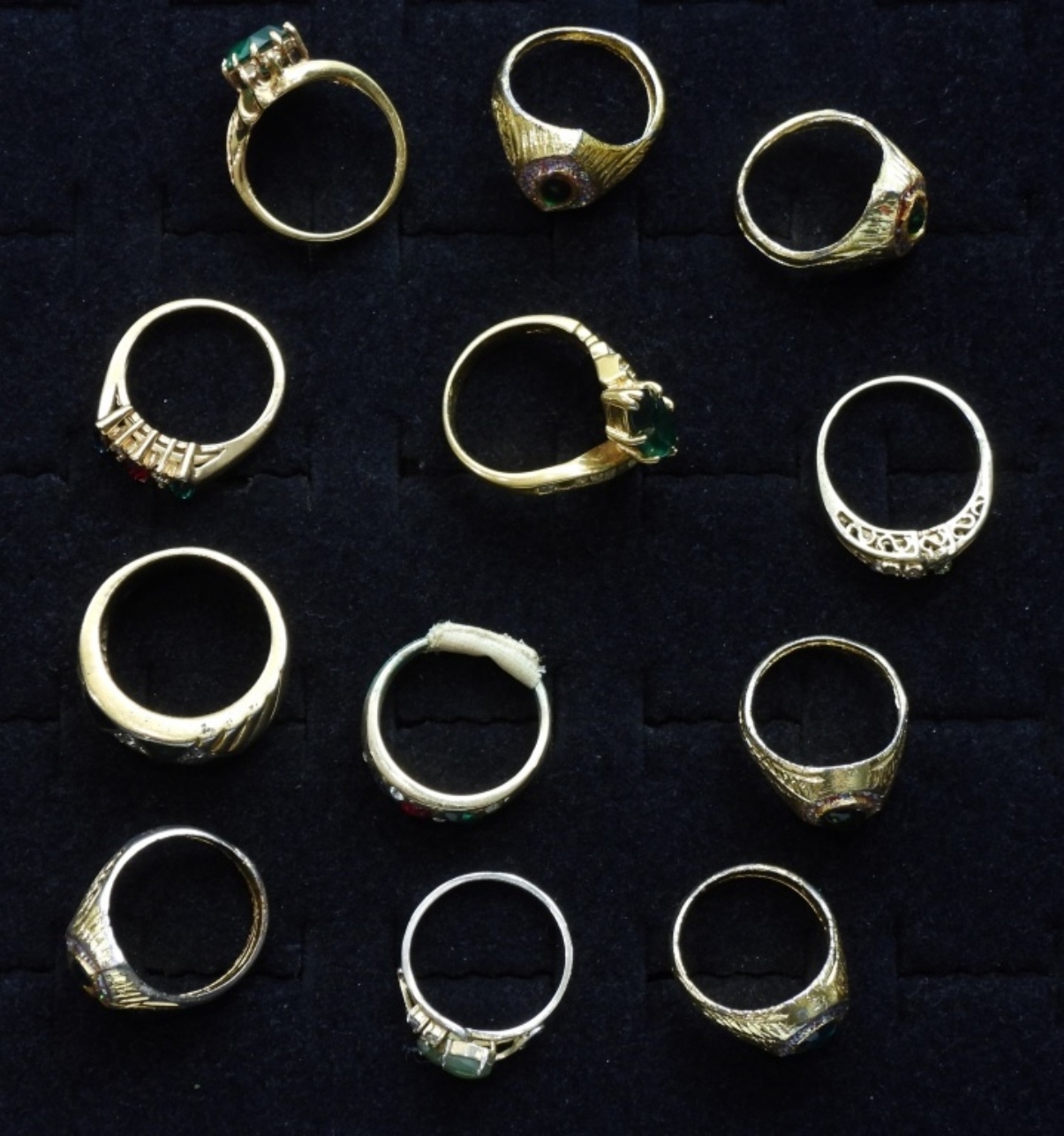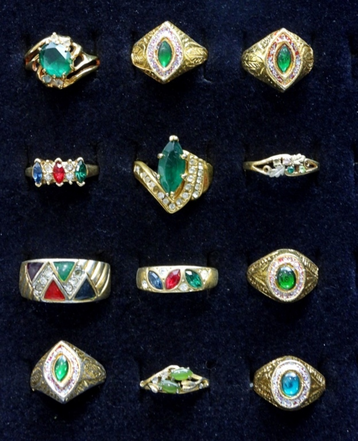 (12) VINTAGE GREEN TON FAUX GEM FINGER RINGS
