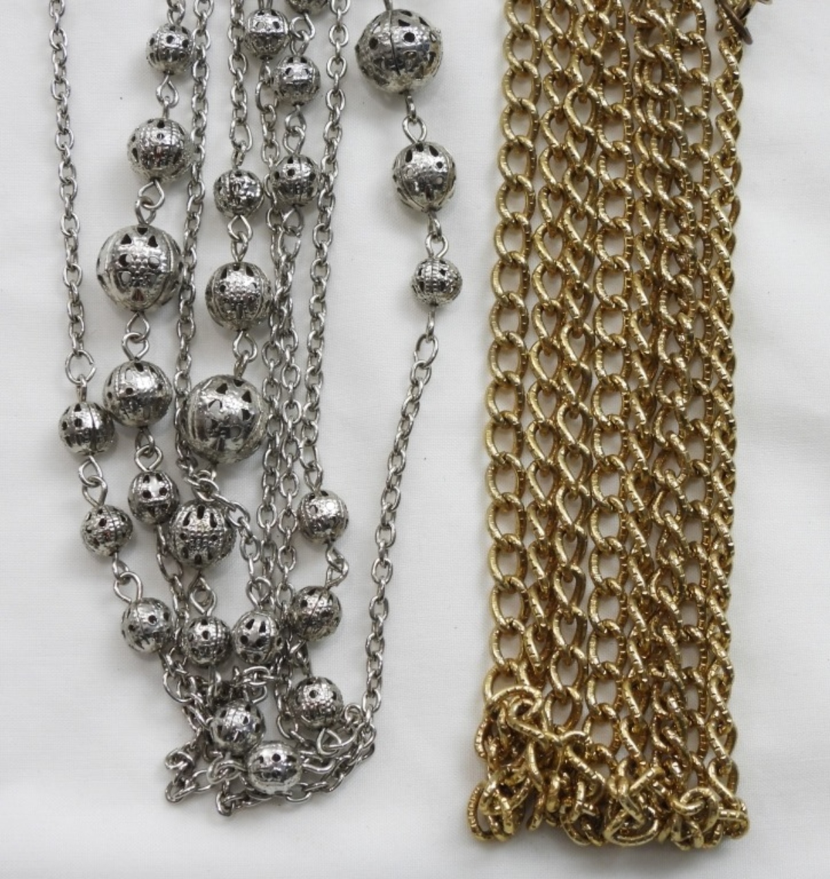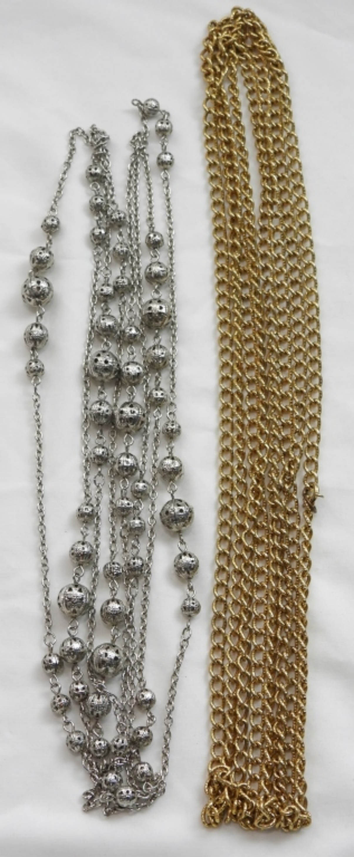 (2) 76-90” GOLD/SILVER TONE NECKLACES- 90” GOL TONE NECKLACE AND 76” SILVER TONE NECKLACE
