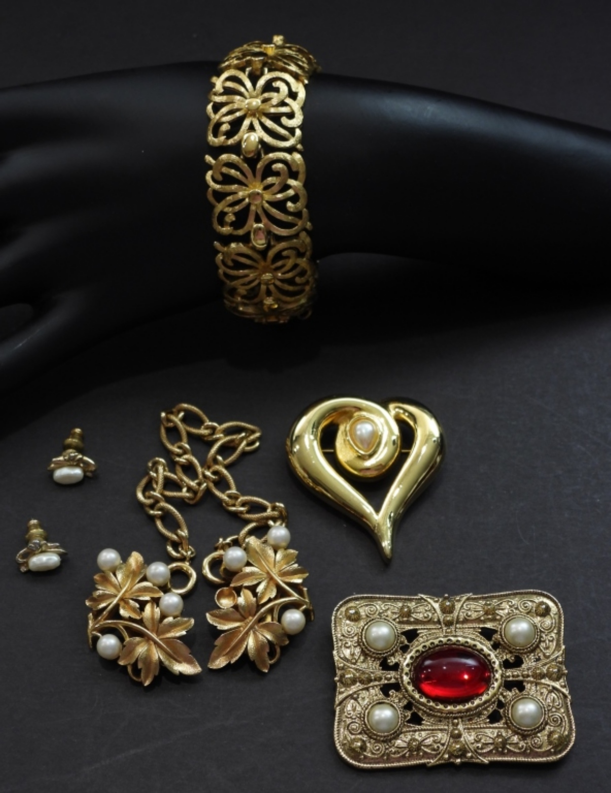 missing (1) FAUX PEARL, (2) PINS (1) PEARL EARRINGS