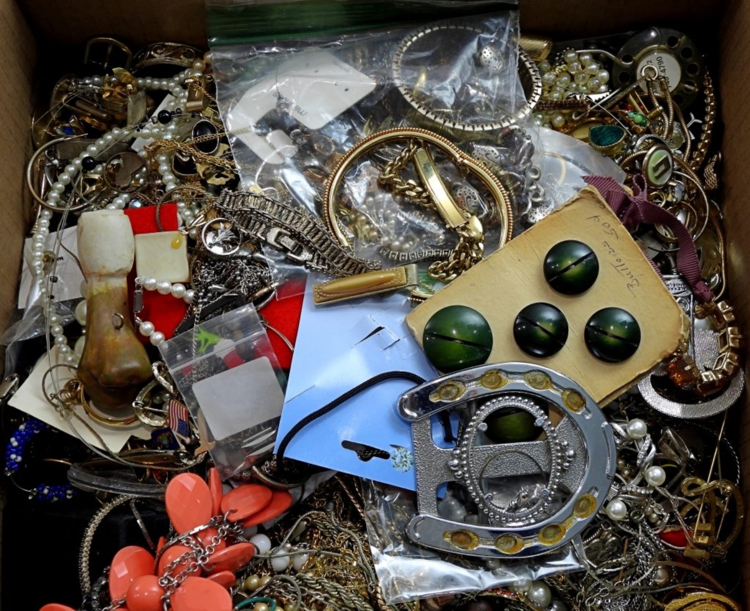 MAY BE BROKEN, TARNISHED, IN NEED OF REPAIR, ETC. SOME WEARABLE, GREAT FOR CRAFTING! MEDIUM/LARGE FLAT RATE BOX