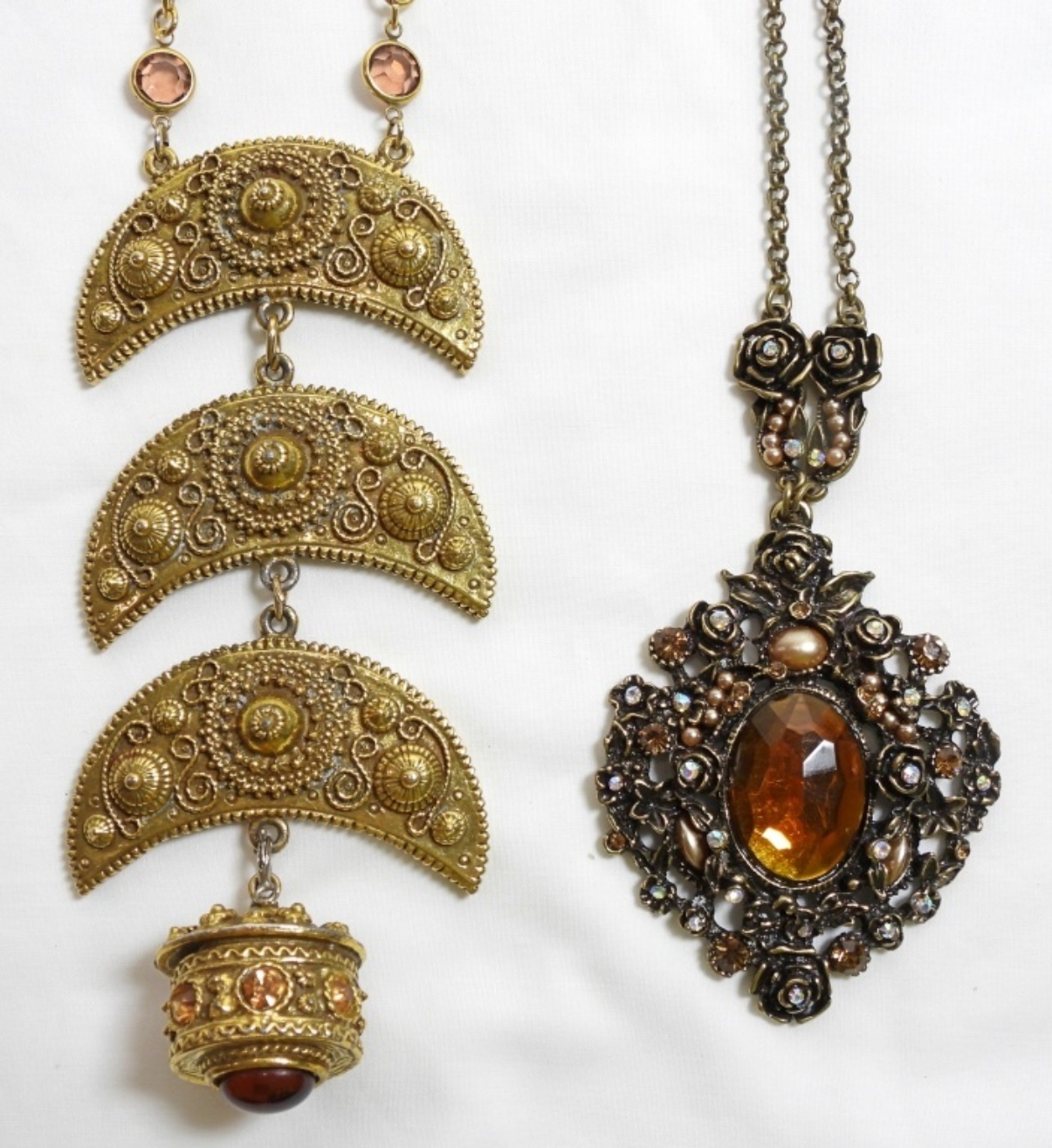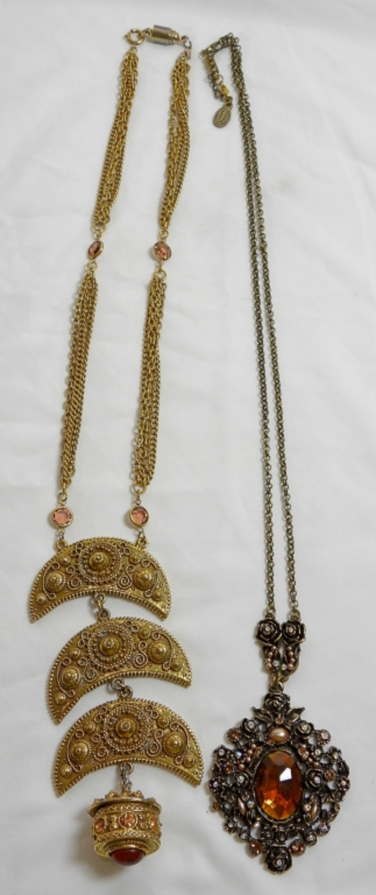 2 BEAUTIFUL SPARKLY NECKLACES, GOLD TONE FAUX COLORED GEM STONE
