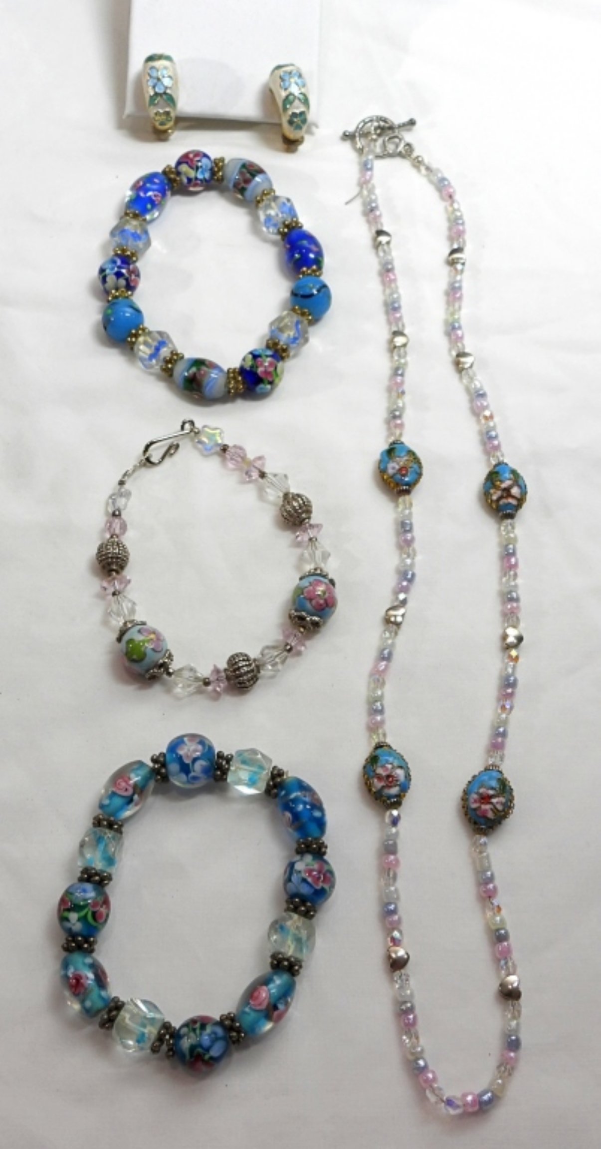 (3) BRACELETS, (1) CLIP-ON EARRINGS & (1) NECKLACE