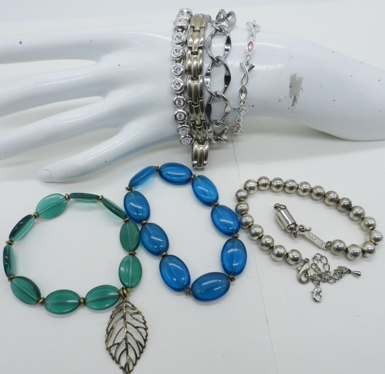 SEVEN FASHION BRACELETS. TWO STRETCHY. 7-12″.