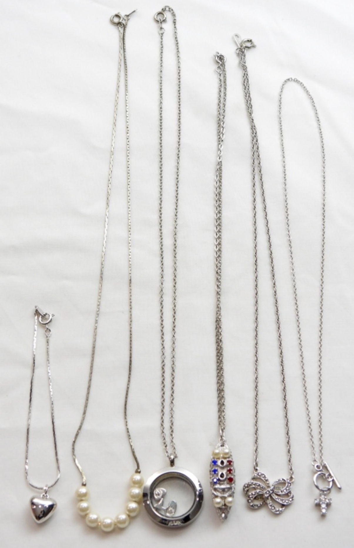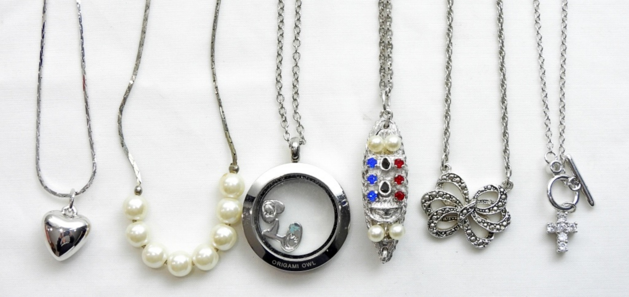 SILVER TONE FASHION NECKLACES- 5 NECKLACES AND 1 BRACELET (BONVOYAGE)
