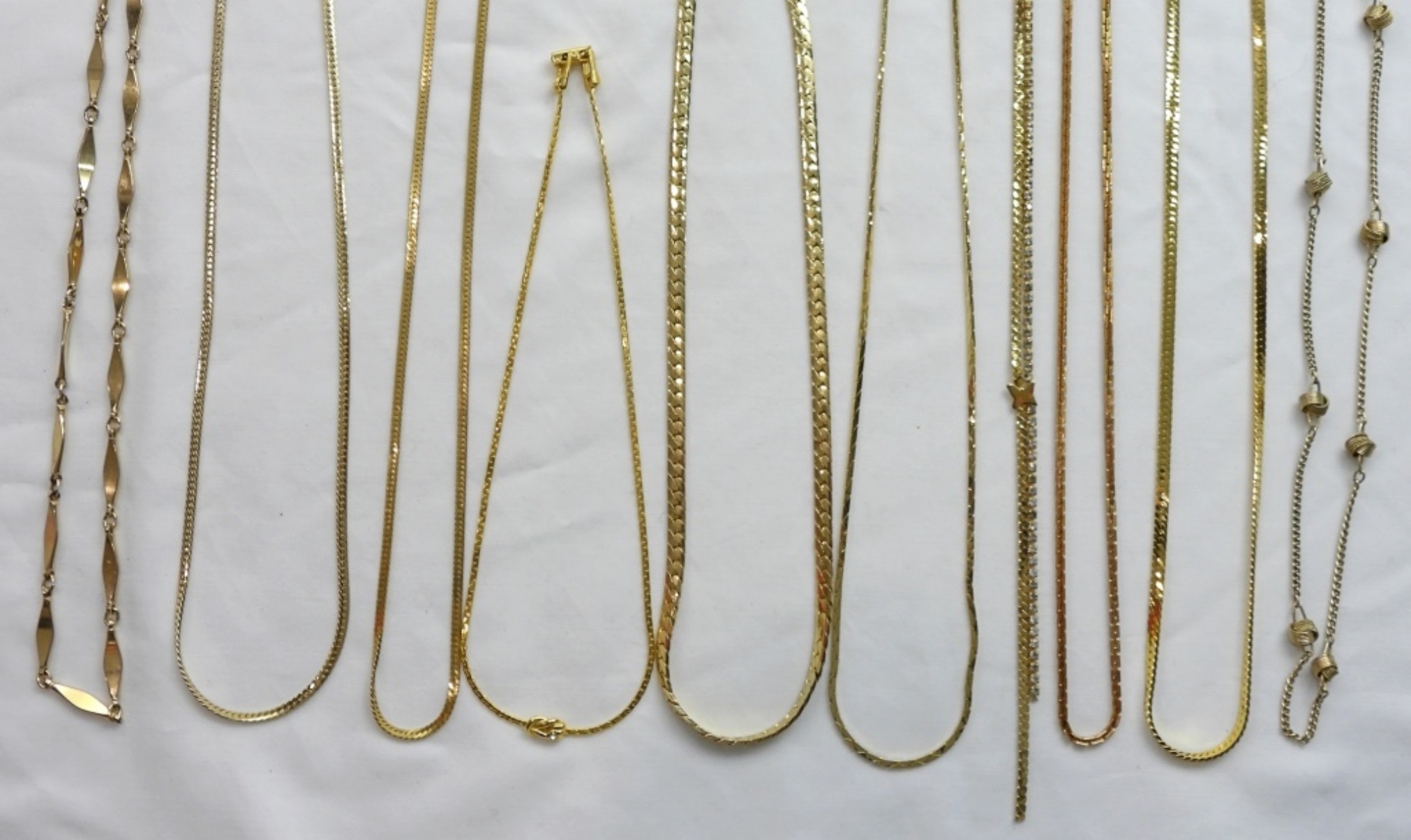 (10) GOLD TONE FASHION NECKLACES- VARIETY OF LENGTHS AND STYLES