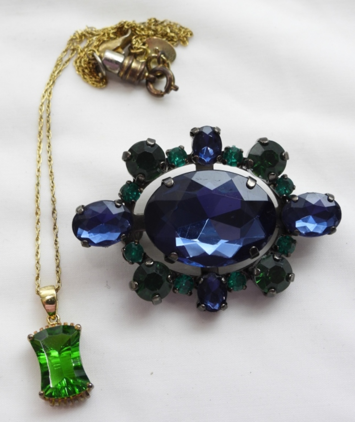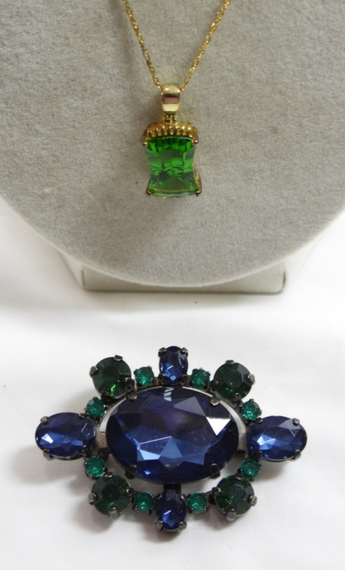 BEAUTIFUL GREEN GEM NECKLACE AND PIN SET