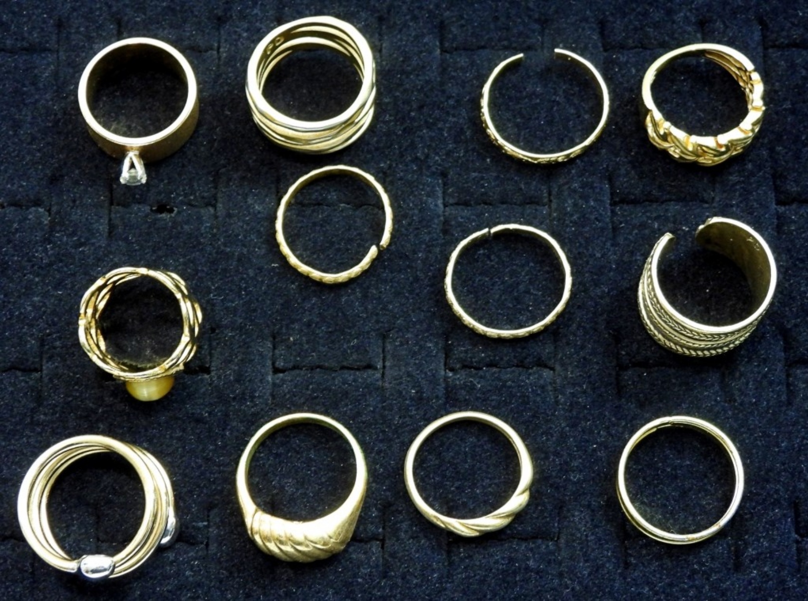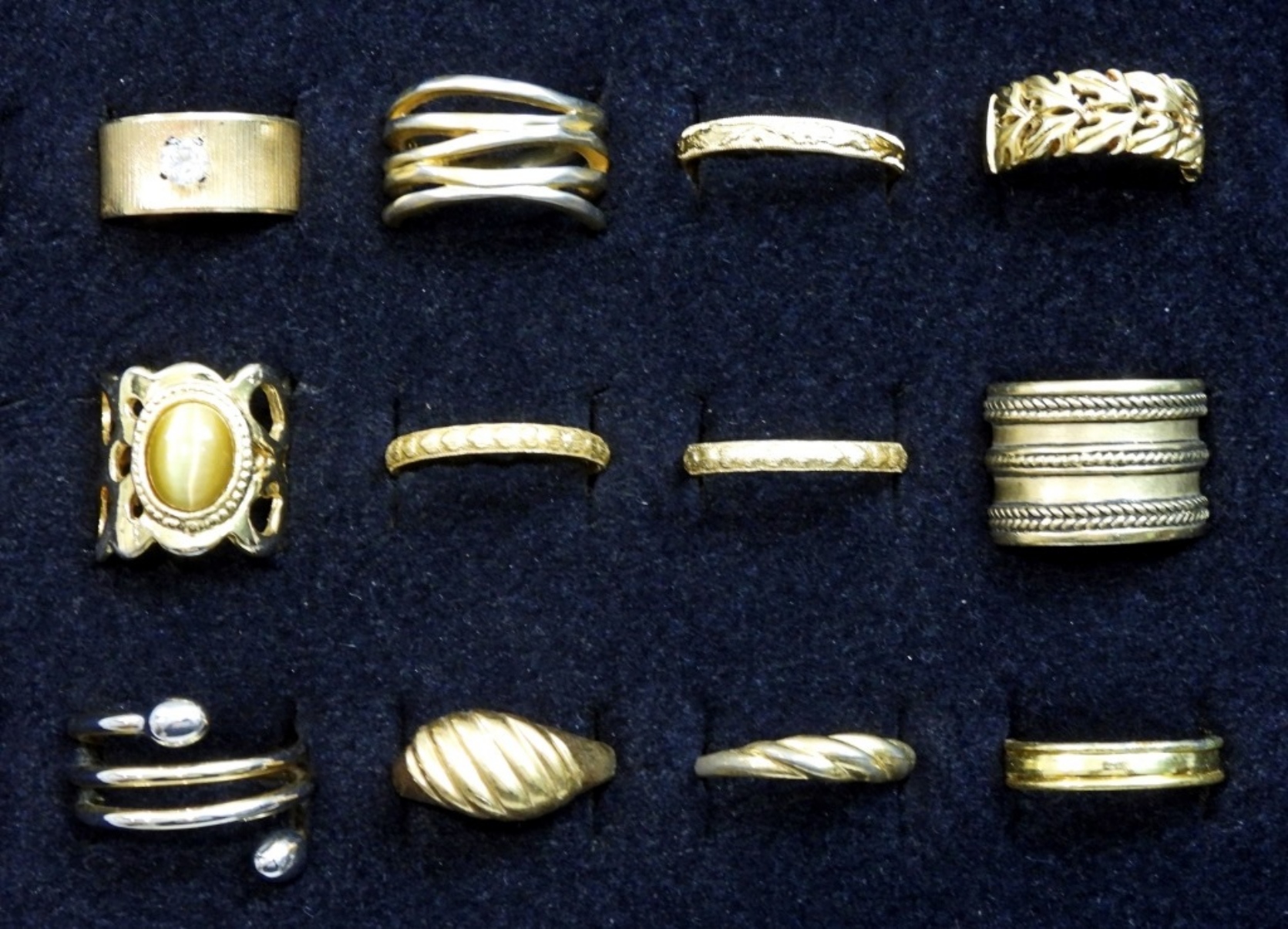 (12) BEAUTIFUL VIBRANT FINGER RINGS, WIDE VARIETY OF STYLES AND SIZES
