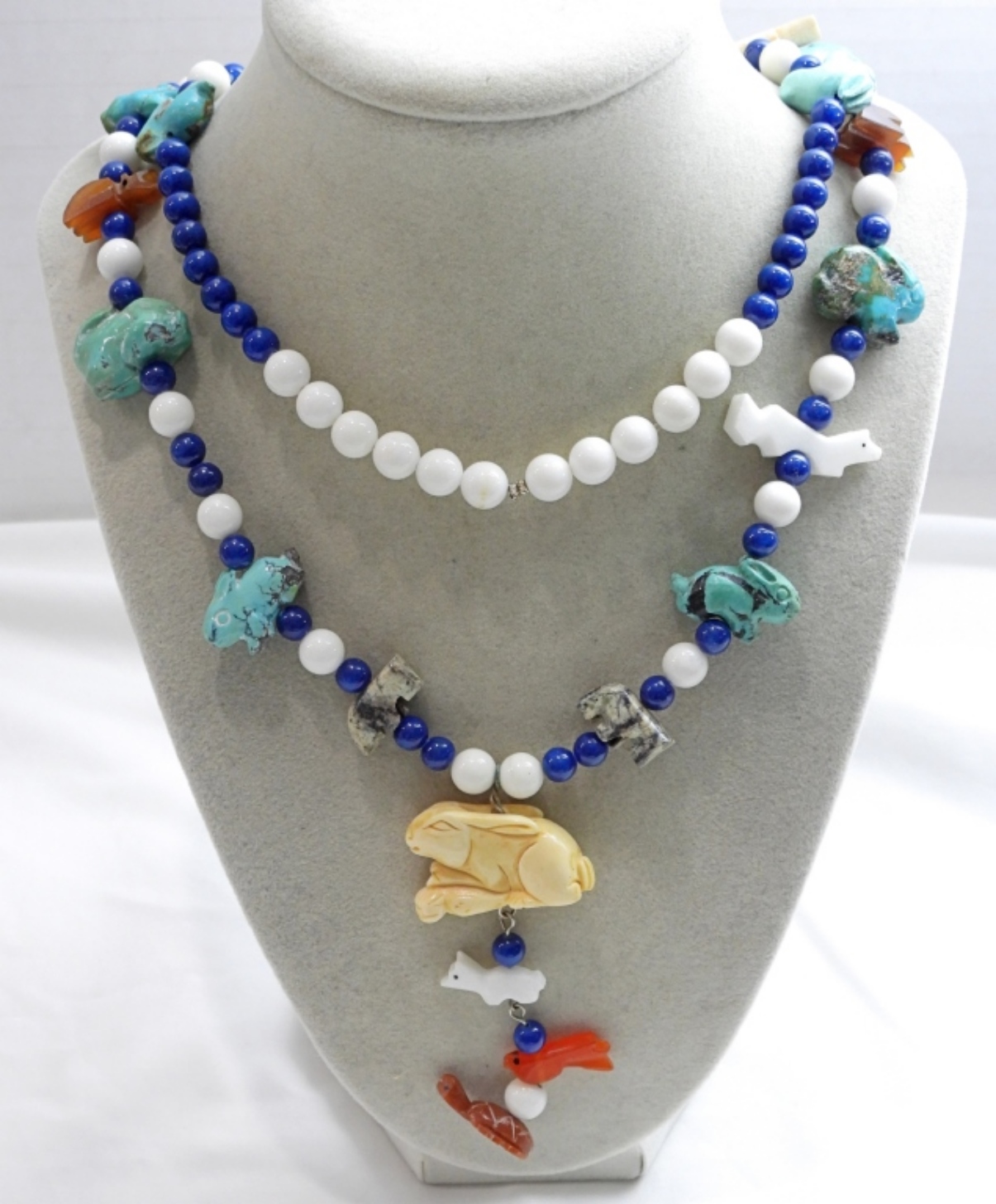 (1) BIRD needs glued / repair – NICE CARVED NECKLACE 34″ LONG