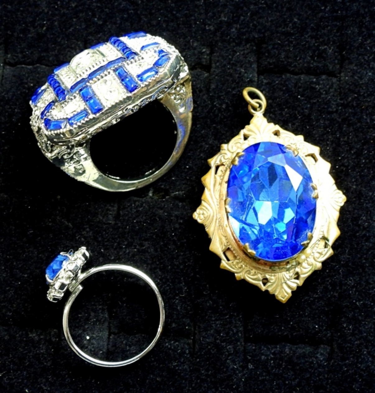 (1) OVERSIZED RING size 9, (1) PRINCESS DIANA STYLE size 8.5 (LOCKET MISSING SOME SEED PEARLS)