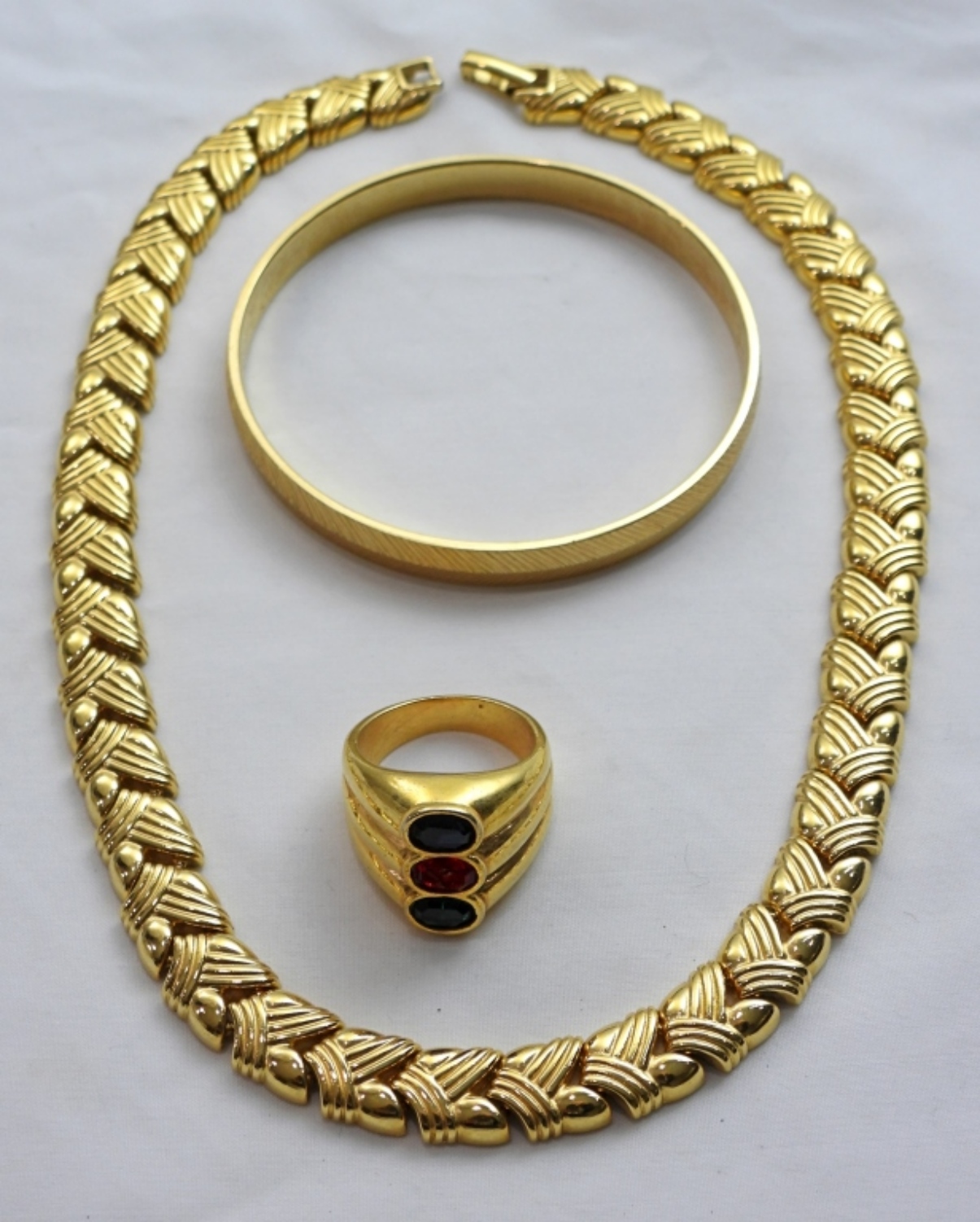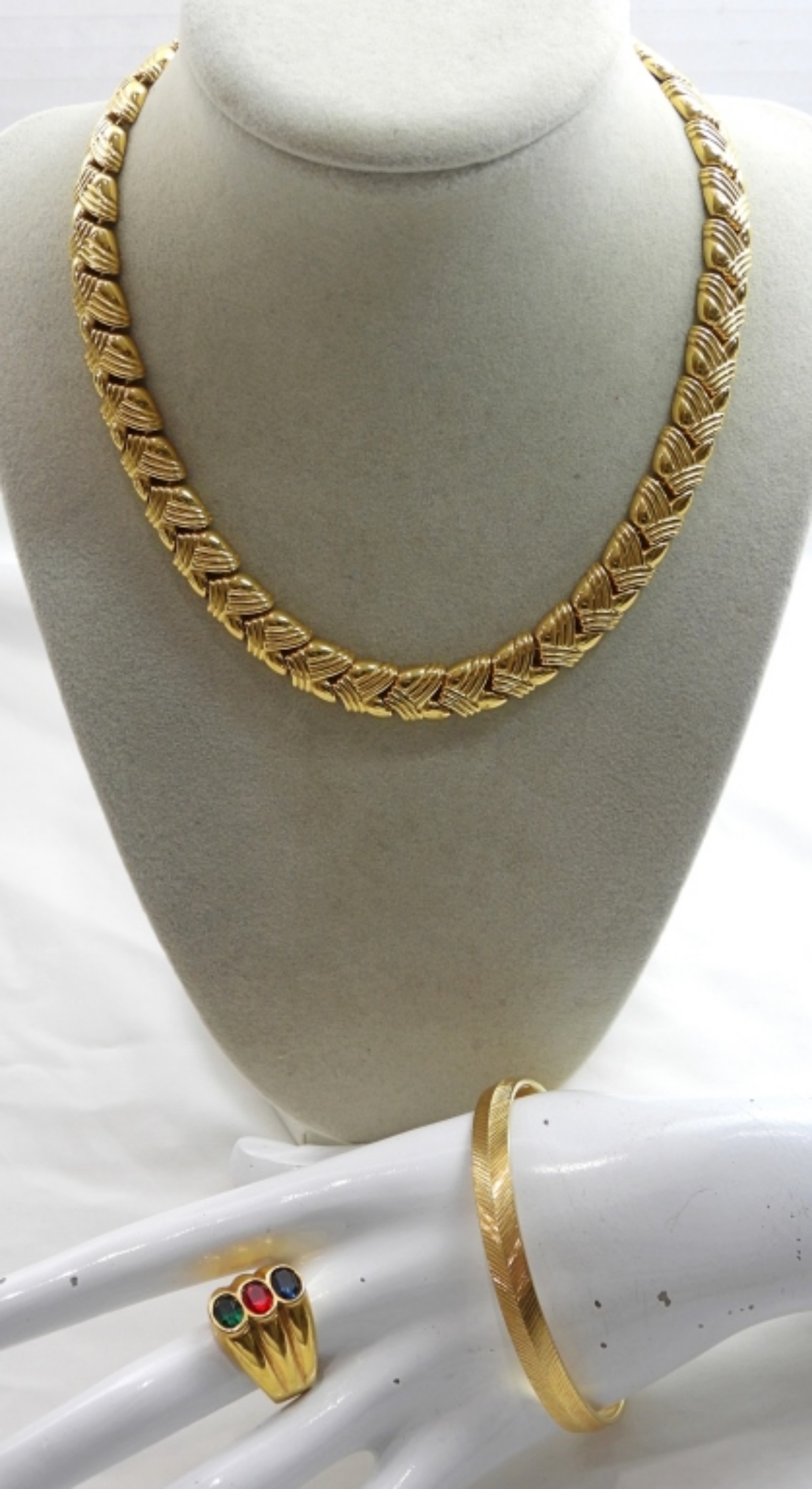 15″ NECKLACE, BANGLE BRACELET & SIZE 9.5 RING
