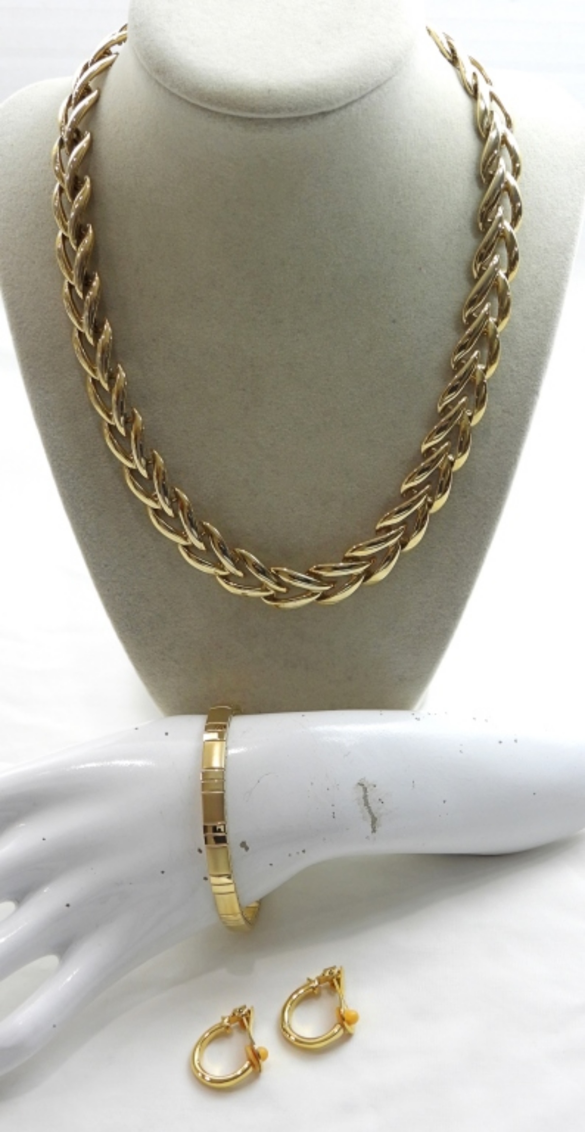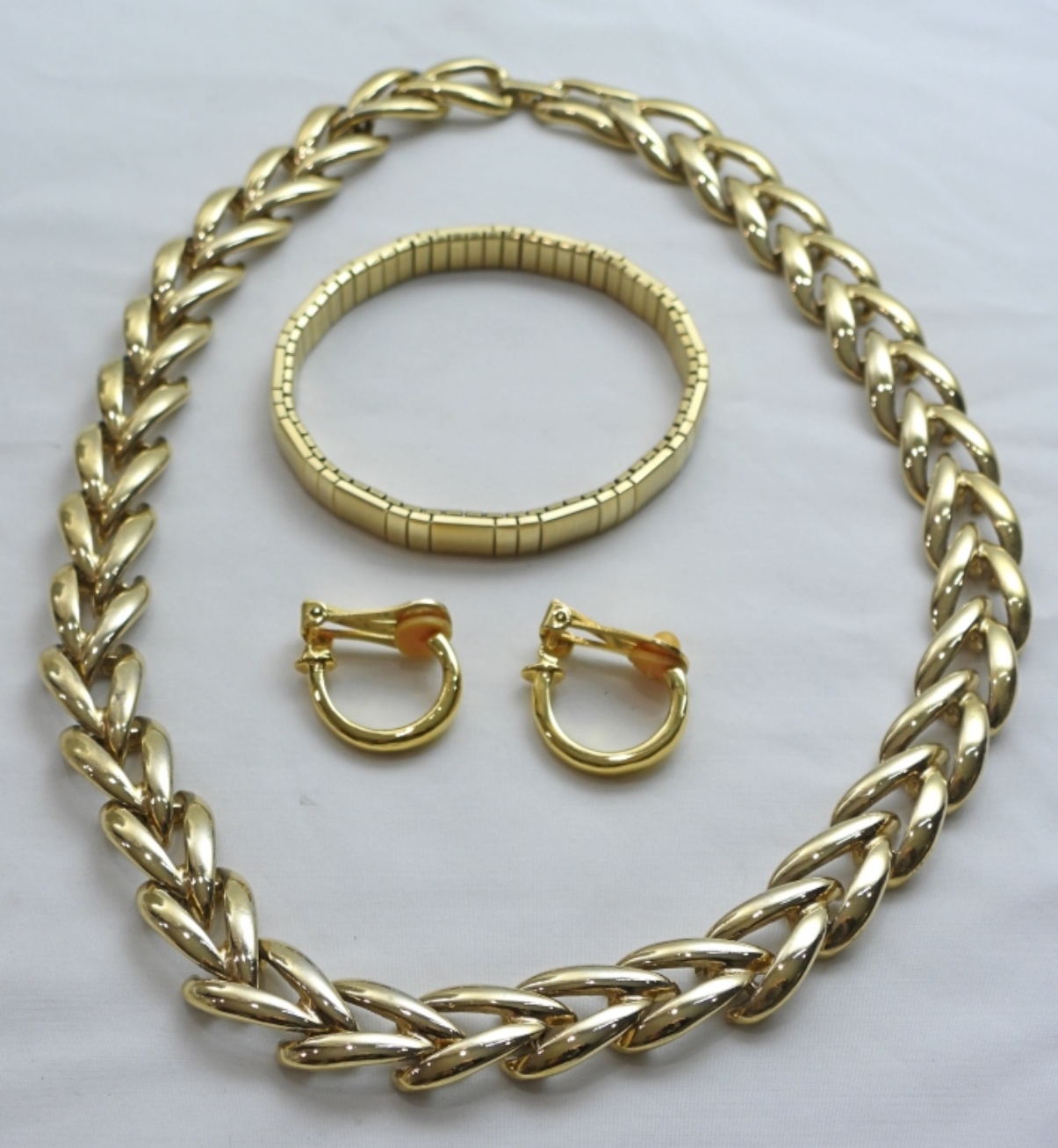GOLD TONE CLIP-ON EARRINGS & STRETCH BRACELET