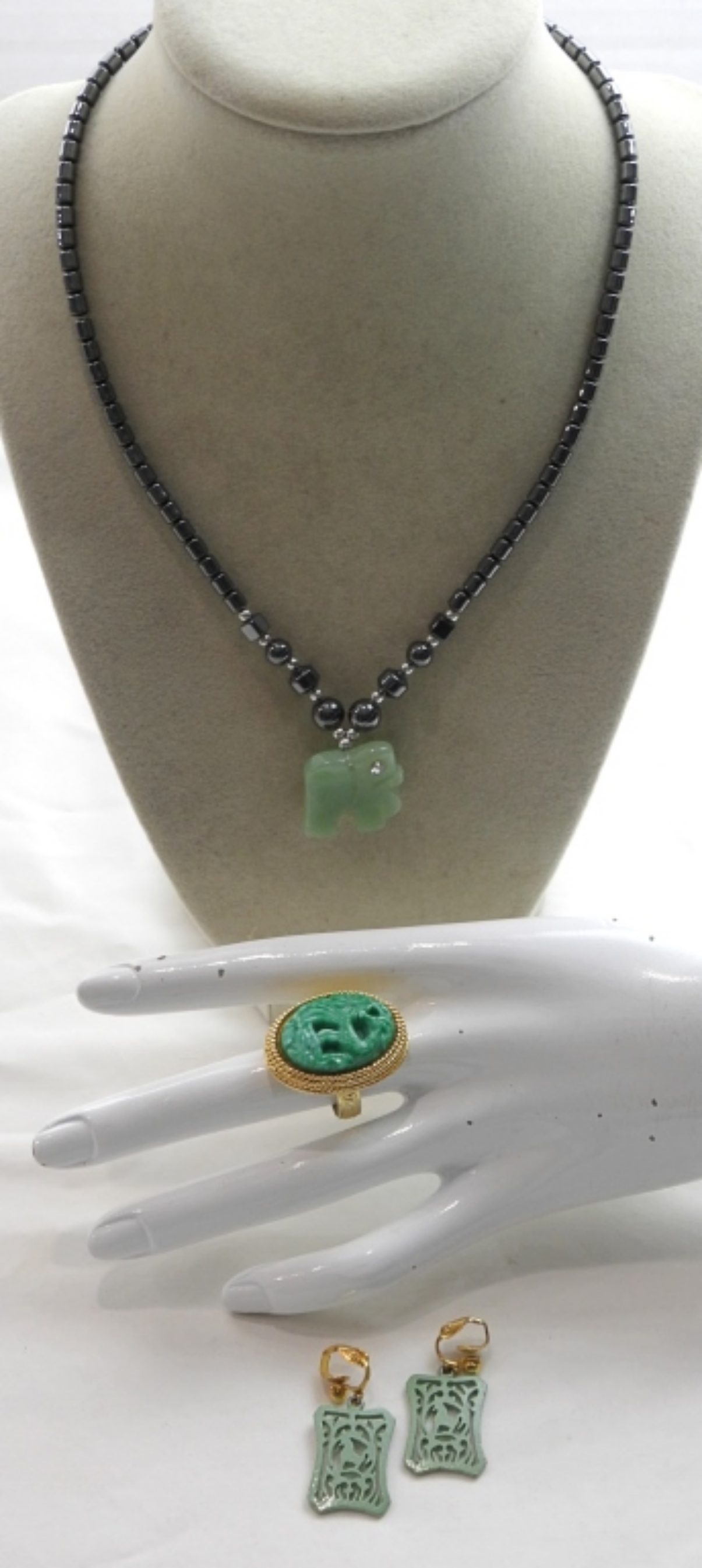 CARVED BIRD OF PARADISE RING SIZE ADJUSTABEL & CLIP-ON EARRINGS