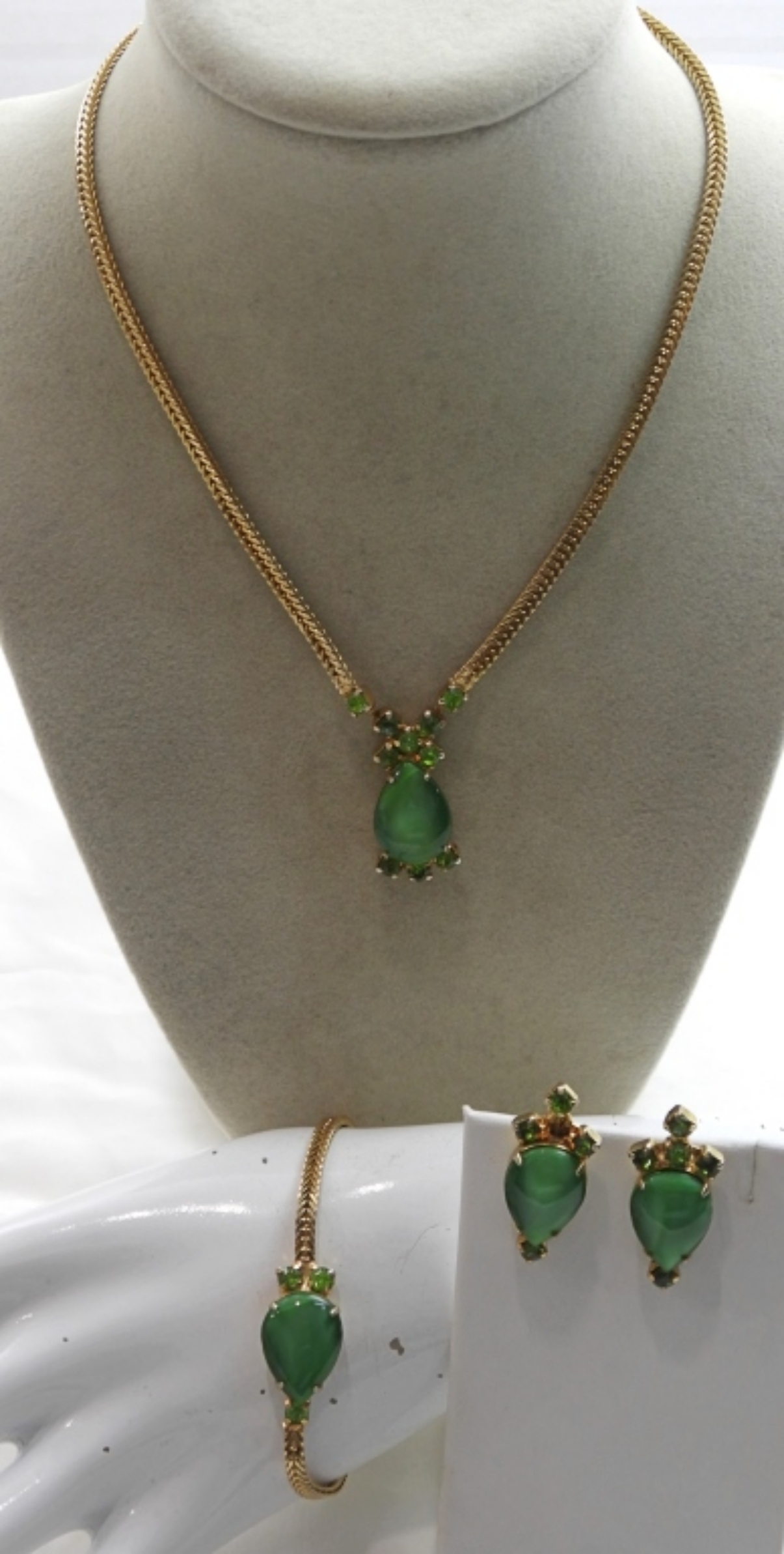 VERY PRETTY CHOCKER NECKLACE, BRACELET & SCREW-BACK EARRINGS one missing (1) rhinestone