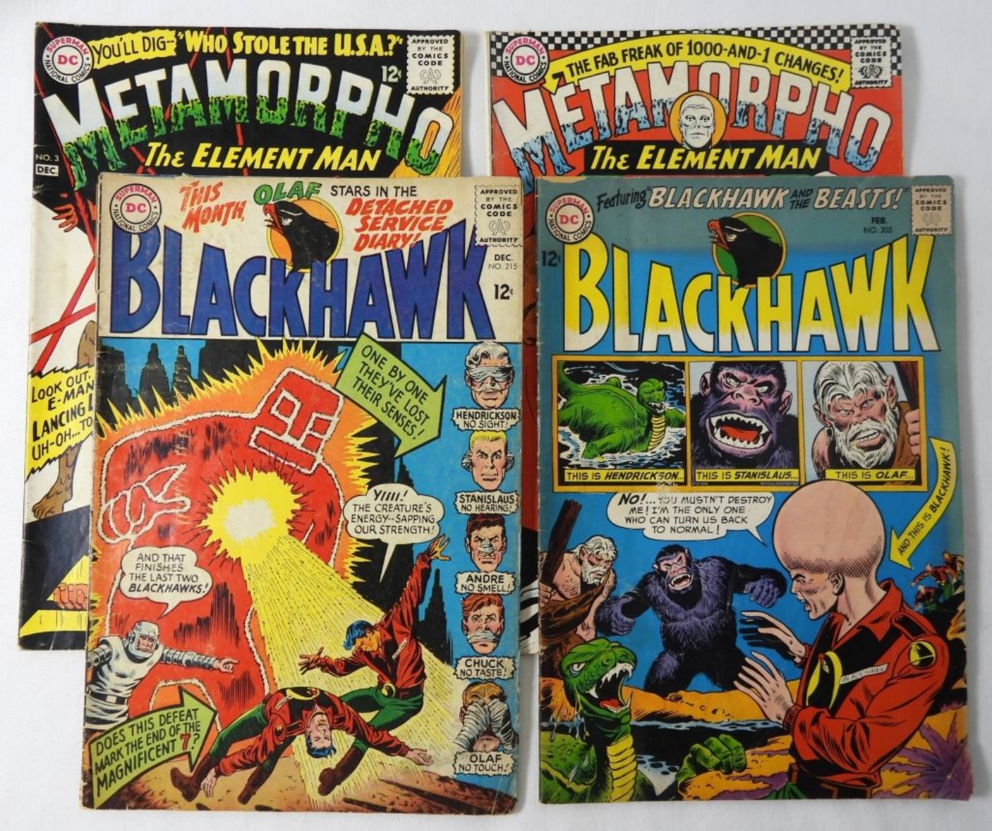4 DC COMICS IN MIXED CONDITIONS. MTAMORPHO #3 AND # 13. BLACKHAWK #205 AND #215