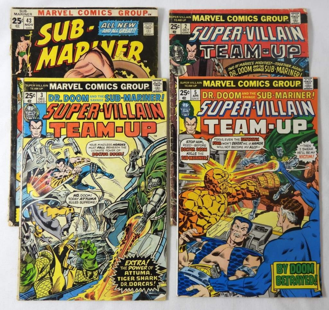 MARVEL IN MIXED CONDITIONS SUB-MARINER LOT: SUB MARINER 1971 #43, SUPER VILLAIN TEAM-UP 1975 #2 AND #3, AND SUPER VILAIN TEAM-UP 1976 #5.