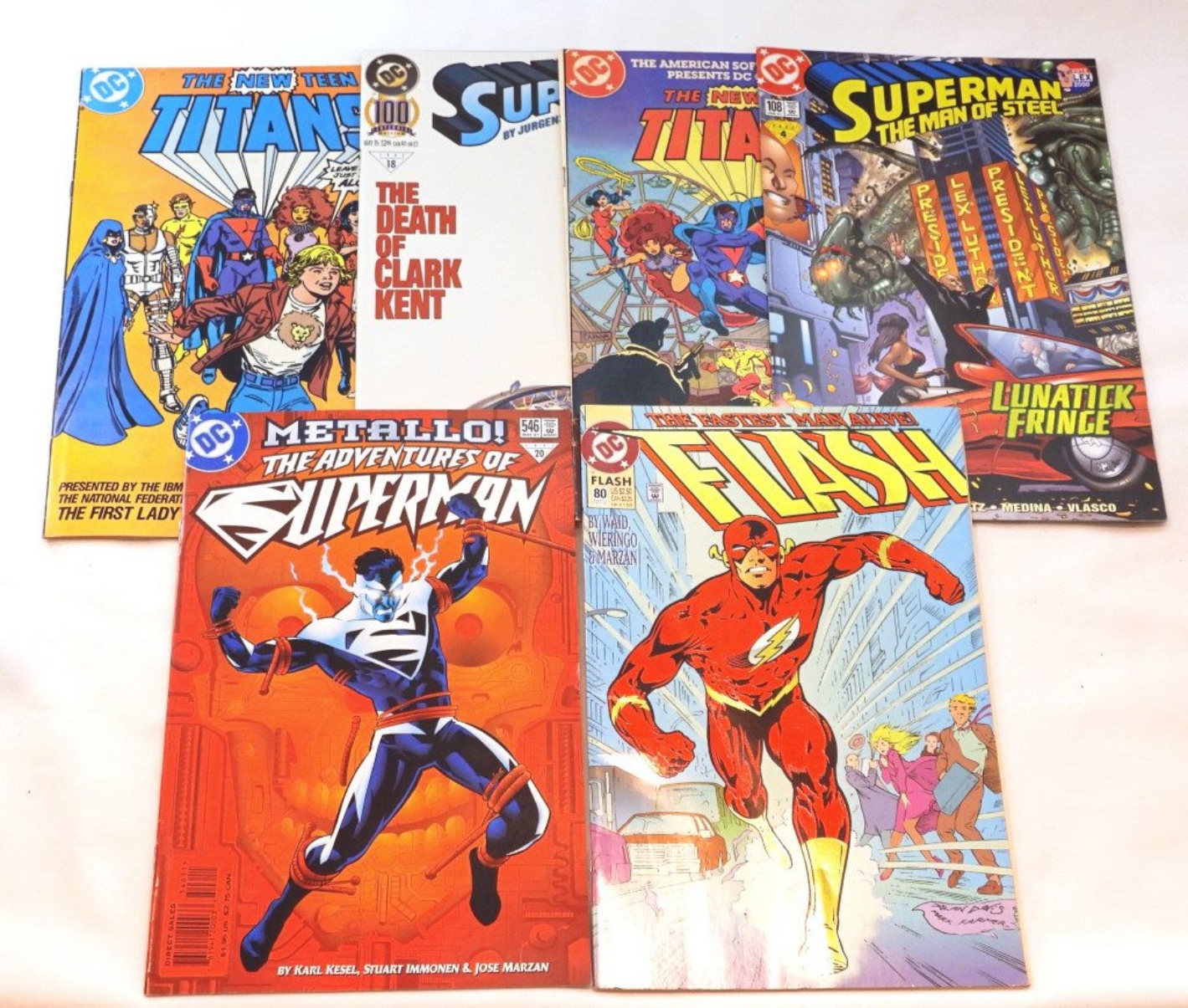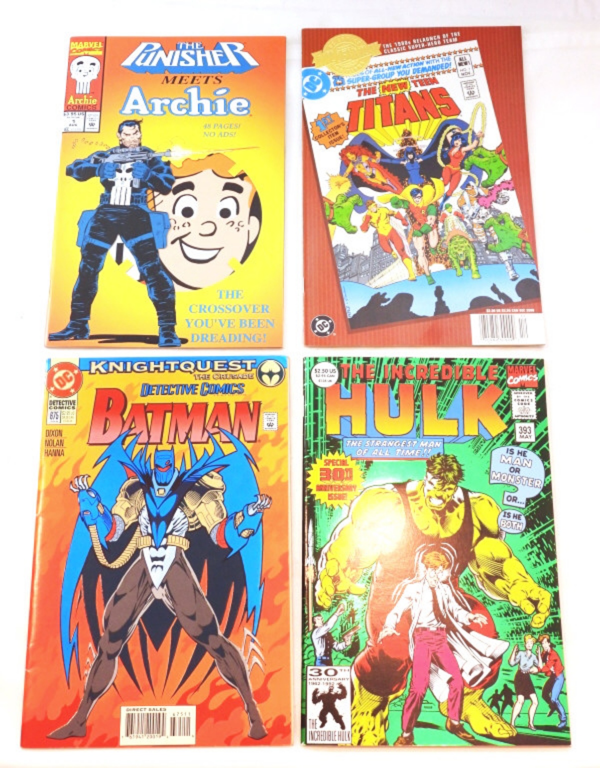 10-1980-2001- DC & MARVEL COMICS- THE INCREDIBILE HULK- NO. 393. THE NEW TEEN TITANS- NO. 1. THE PUNISHER MEETS ARCHIE- NO. 1. BATMAN- NO. 675. FLASH- NO. 80. THE ADVENTURES OF SUPERMAN- NO. 546. SUPERMAN THE