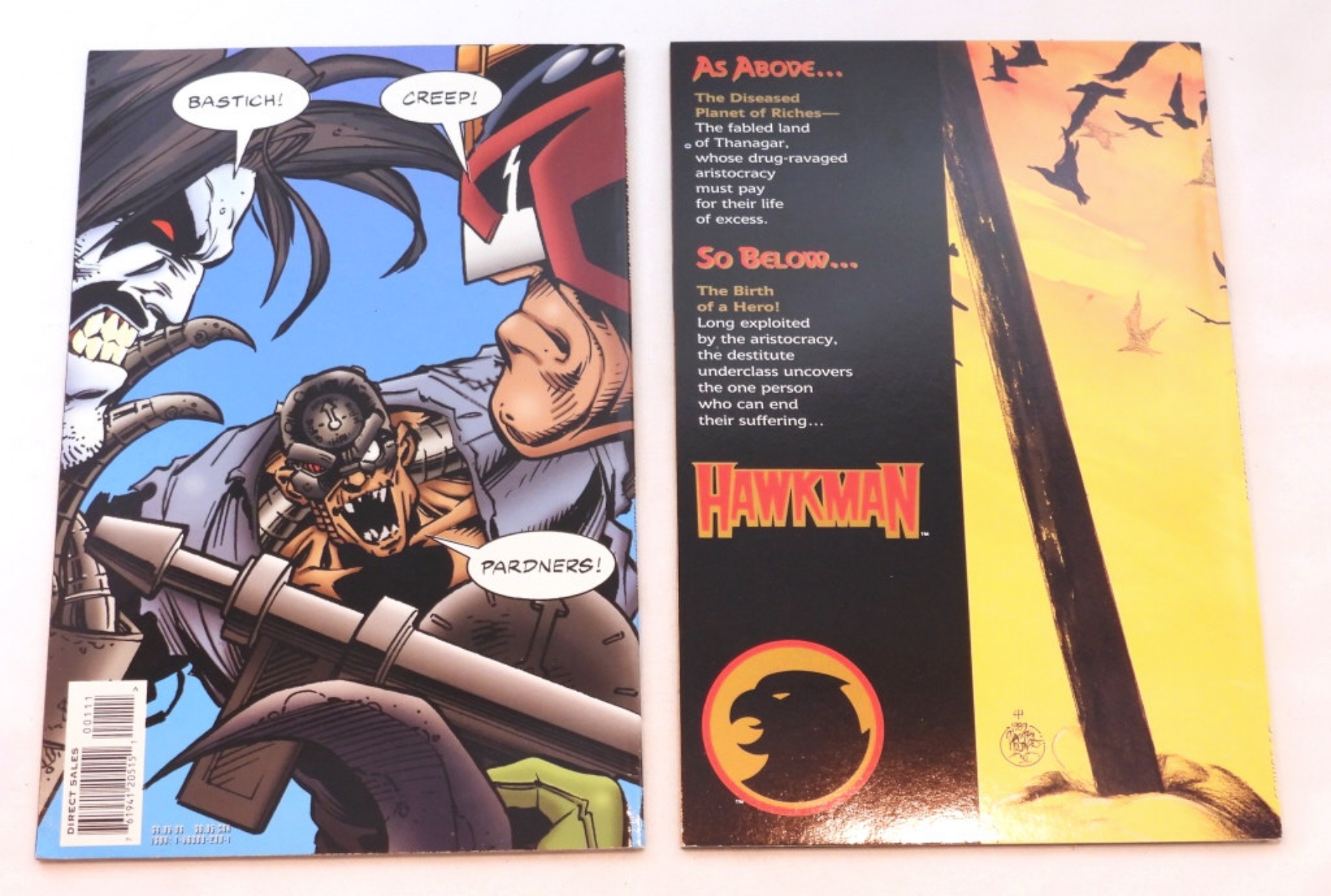 1989-1995- DC COMICS- HAWKWORLD- 1989. LOBO JUDGE DREDD- 1995- BOTH OF THESE COMICS ARE IN GOOD CONDITION. THEY DO SHOW A LITTLE BIT OF WEA, PREOWNED.