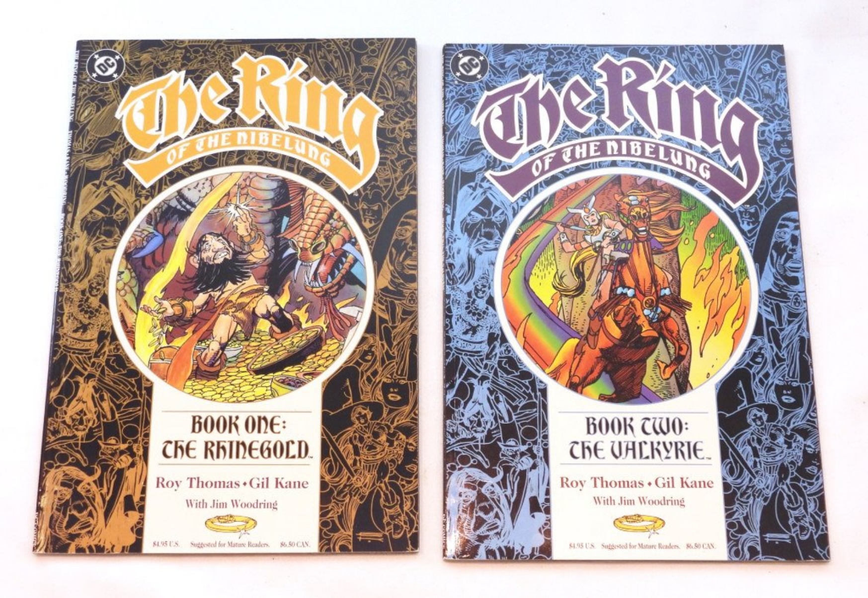 1992-2021- DC COMICS- BATMAN VERSUS PREDATOR- 1992. THE JOKER- 2021. TITAN- 2008- NO. 5.THE RING OF THE NIBELUNG 1990-1989. ALL OF THESE COMICS ARE IN GOOD CONDITION. THEY DO SHOW SOME WEAR, PREOWNED.
