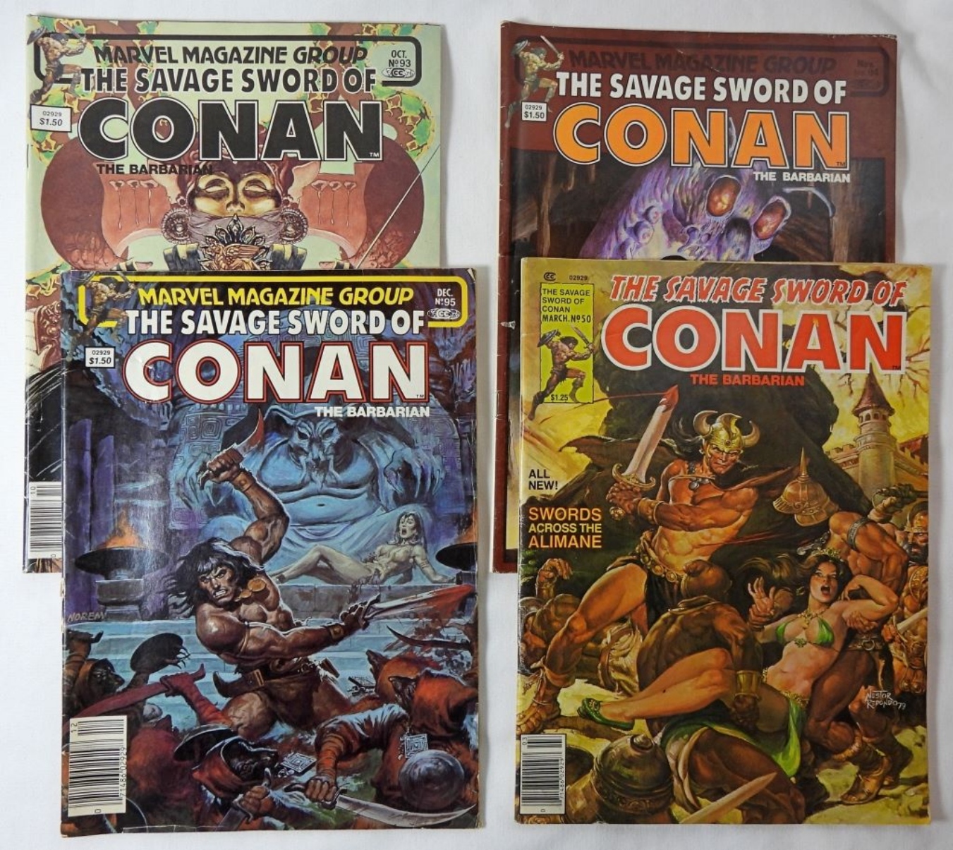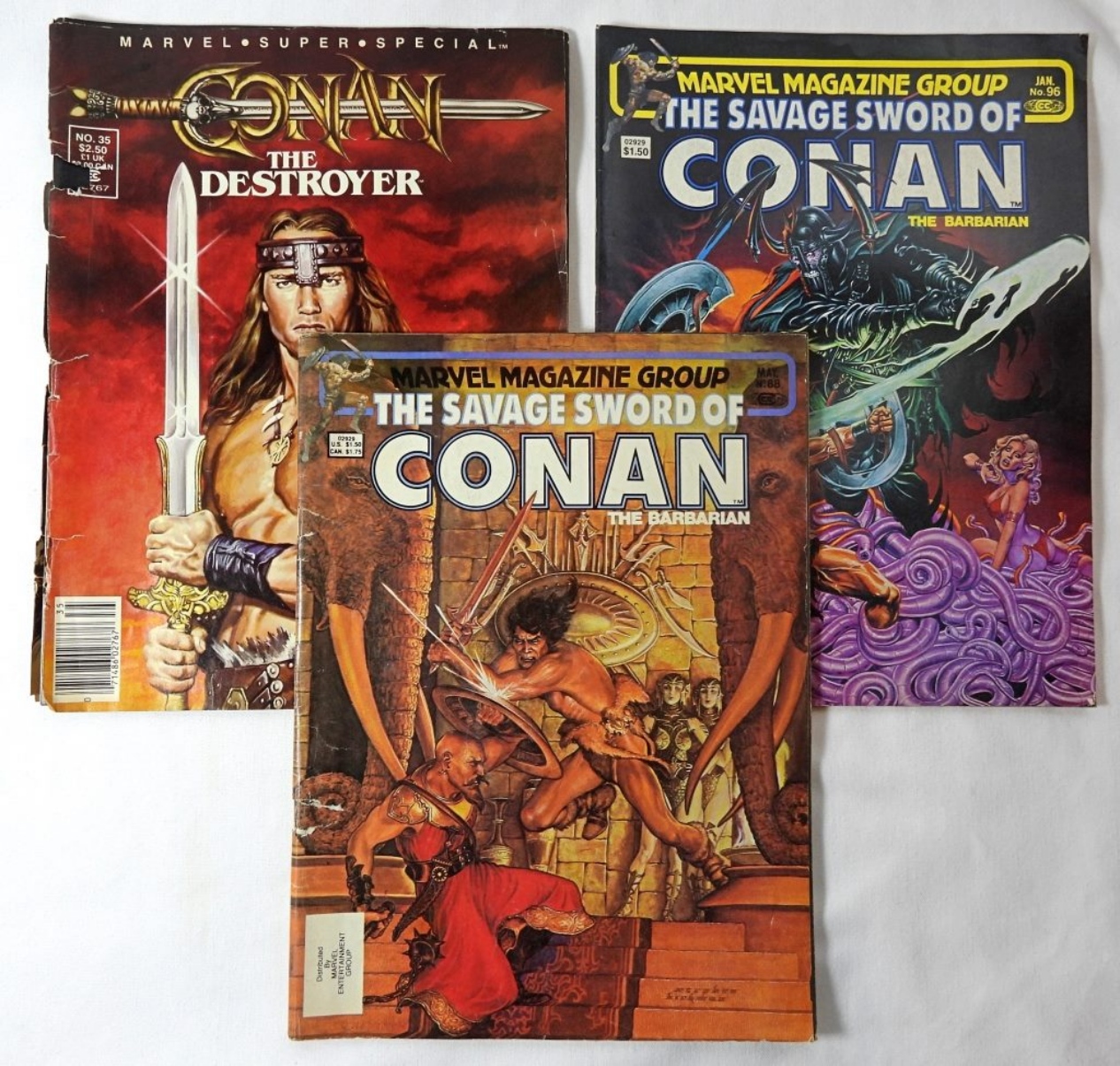 7- MARVEL MAGAZINES- CONAN THE BARBARIAN- 1995- NO 95, 94, 93, 50, 88, 96, 35. ALL OF THESE MAGAZINES ARE IN FAIR TO GOOD CONDITION. NO 35- THE FRONT AND BACK COVER OF THE MAGAZINE ARE NOT ATTACHED. THESE