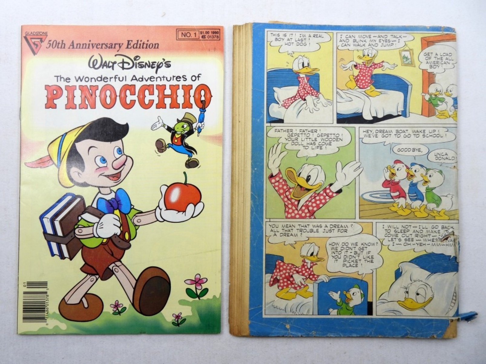 #92 WALT DISNEY THE WONDERFUL ADVENTURE OF PINOCCHIO, IN FAIR CONDITION 1945, PLUS COPY OF THE ADVENTURE OF PINOCCHIO 50TH ANNIVERSARY EDITION