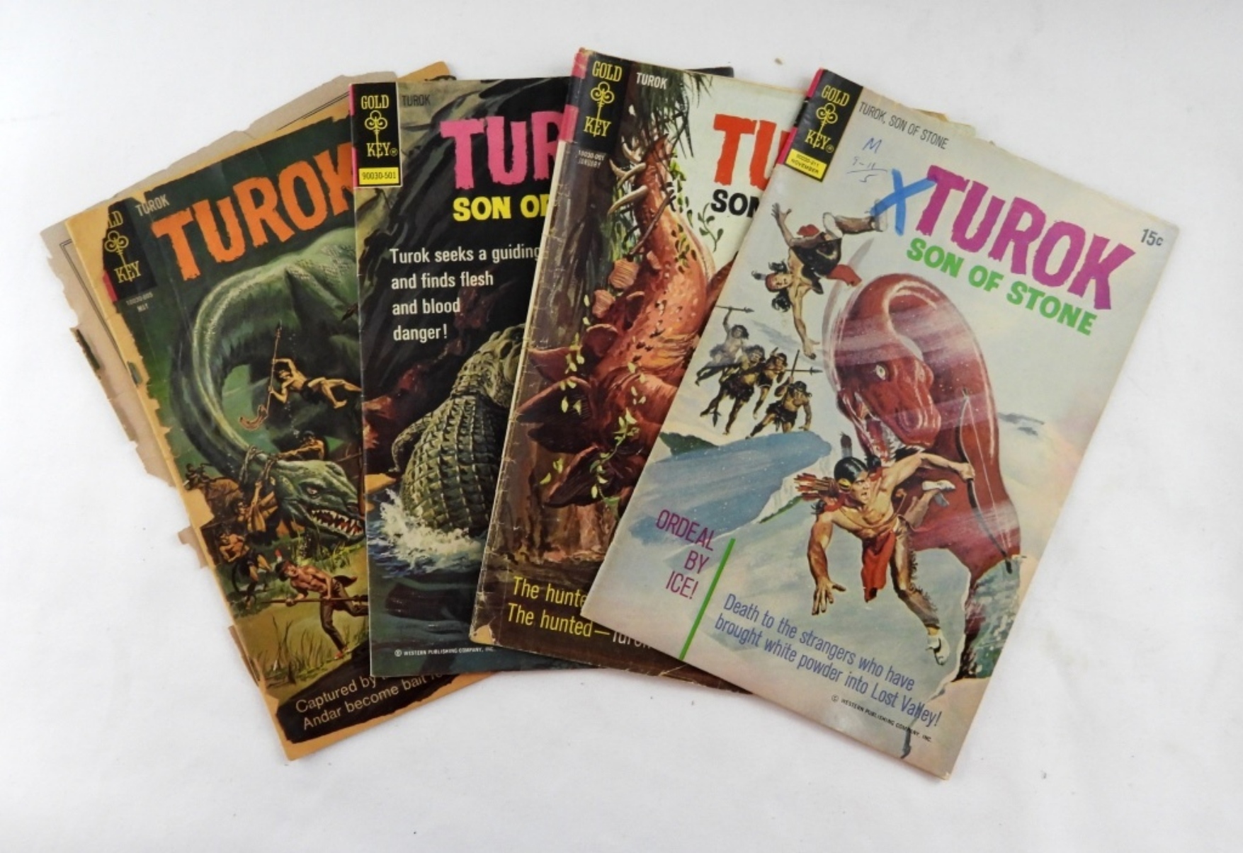 4 GOLD KEY TUROK SON OF STONE- NO.#81, 68, 94, 51. 3 IN GOOD CONDITION, 1 IS IN FAIR CONDITION. ALL PREOWNED