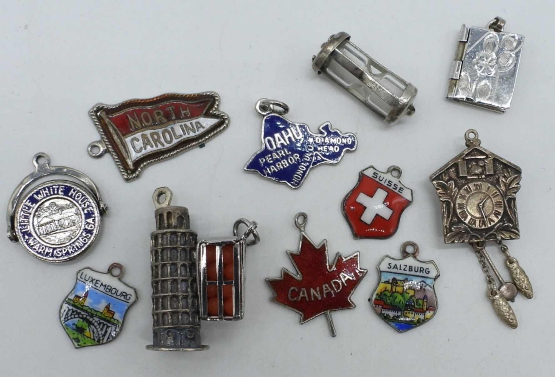 12 VINTAGE STERLING SILVER CHARMS. (14 DWT)